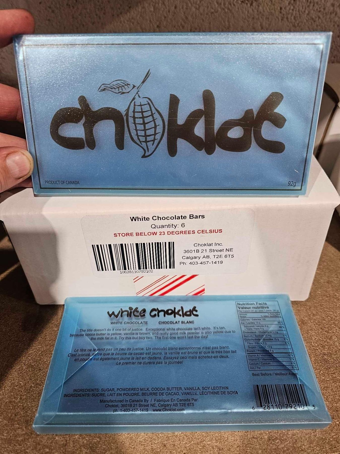 Locally Made Choklot White Chocolate Bars (6 x 92g)