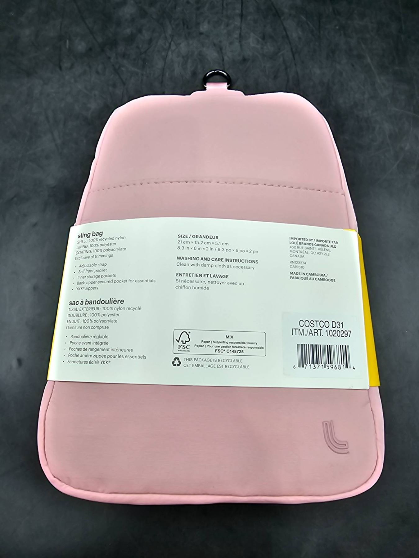 Lole Unisex Sling Bag in Pink with Adjustable Strap