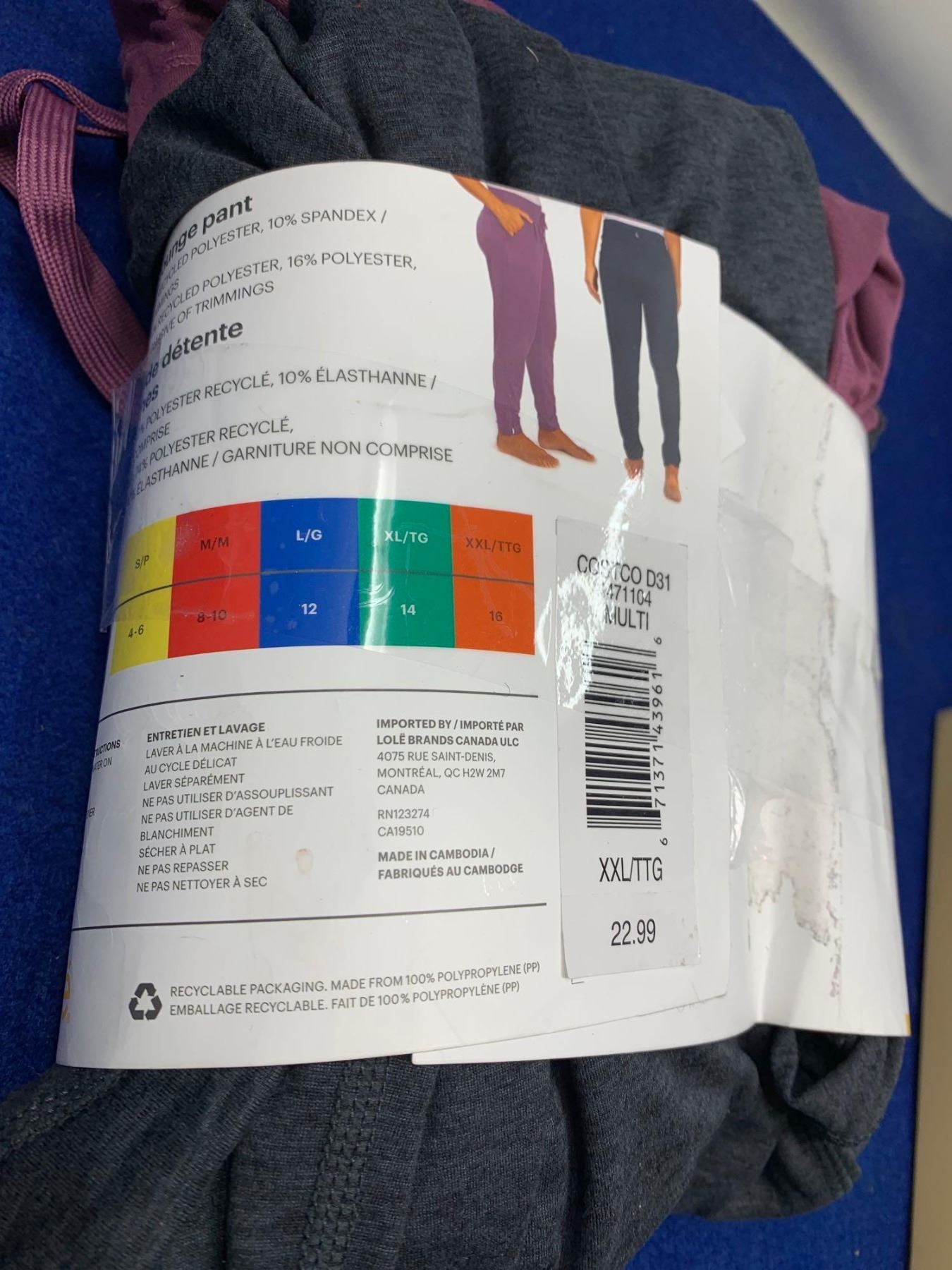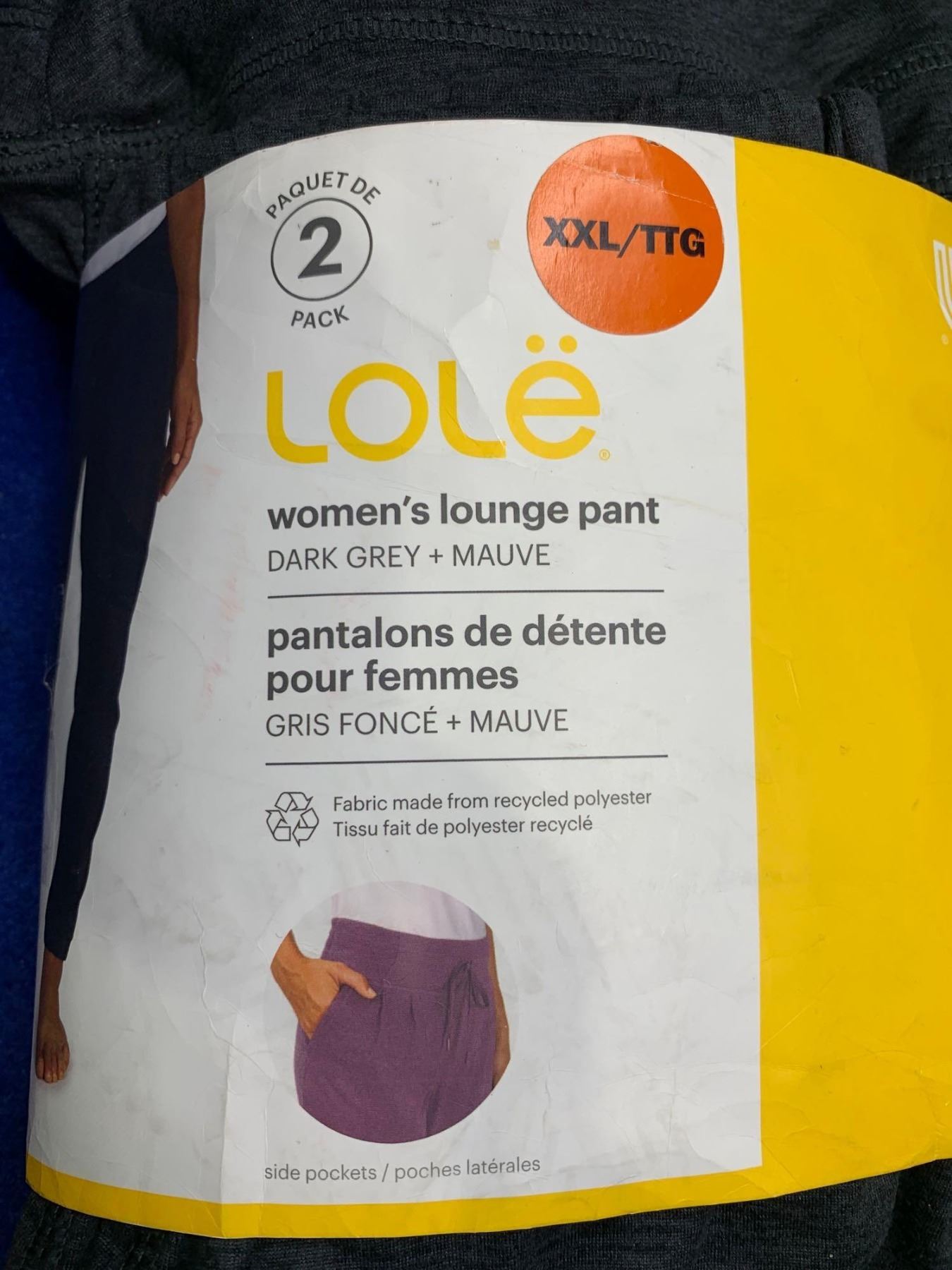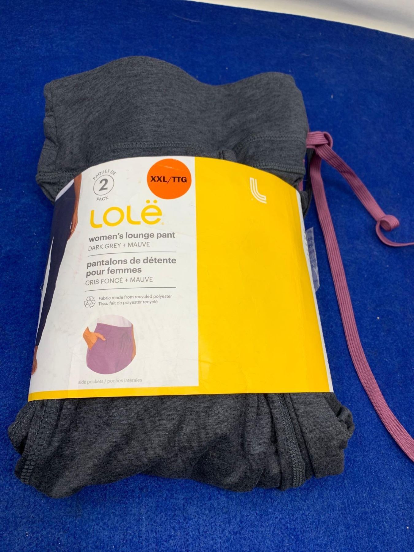Lole Women's Lounge Pant-Dark Grey and Mauve (XXL)