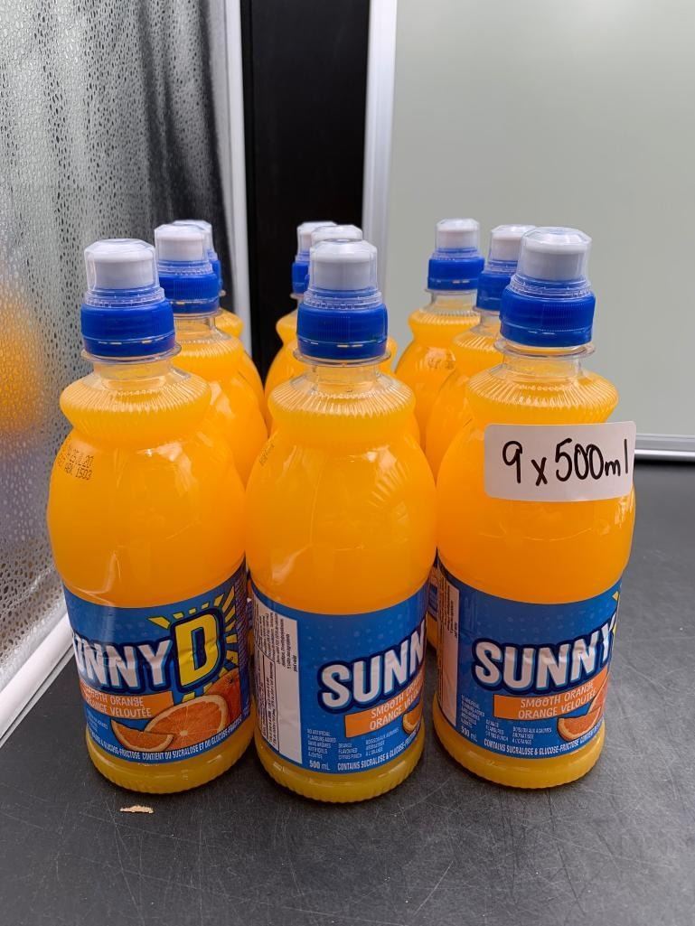 Lot Of Nine Sunny D Smooth Orange Juice Bottles, 500ml Each