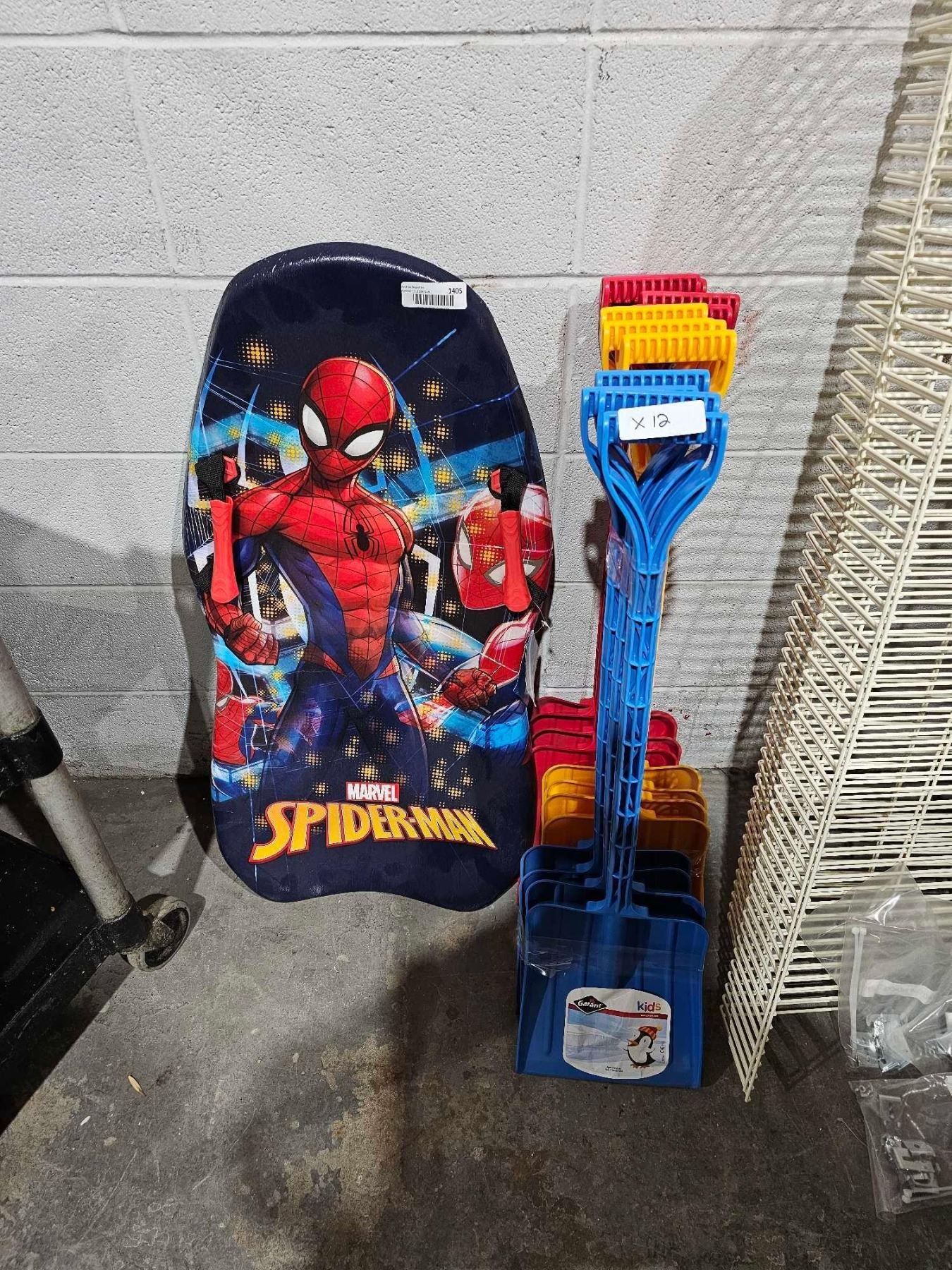 Lot of 12 Garant  Childrens Shovels & Spiderman Tobboggan