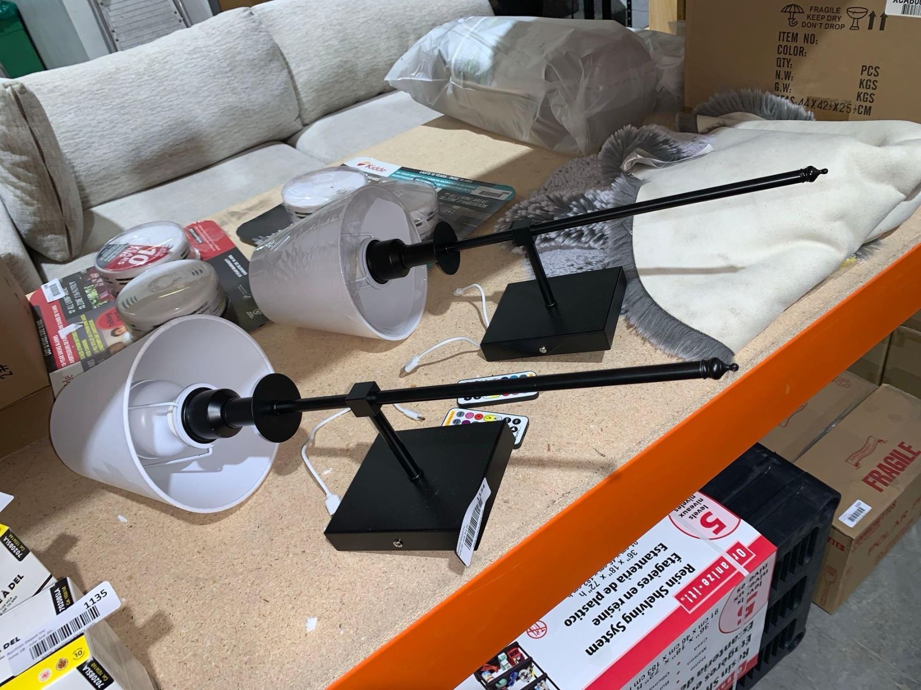 Lot of 2 Black And White Shaded Bed Side Lamps with Remote Control Color