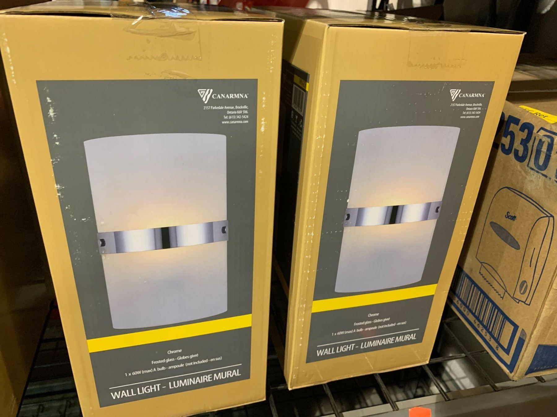 Lot of 2-Canarmna Chrome Frosted Glass Wall Light