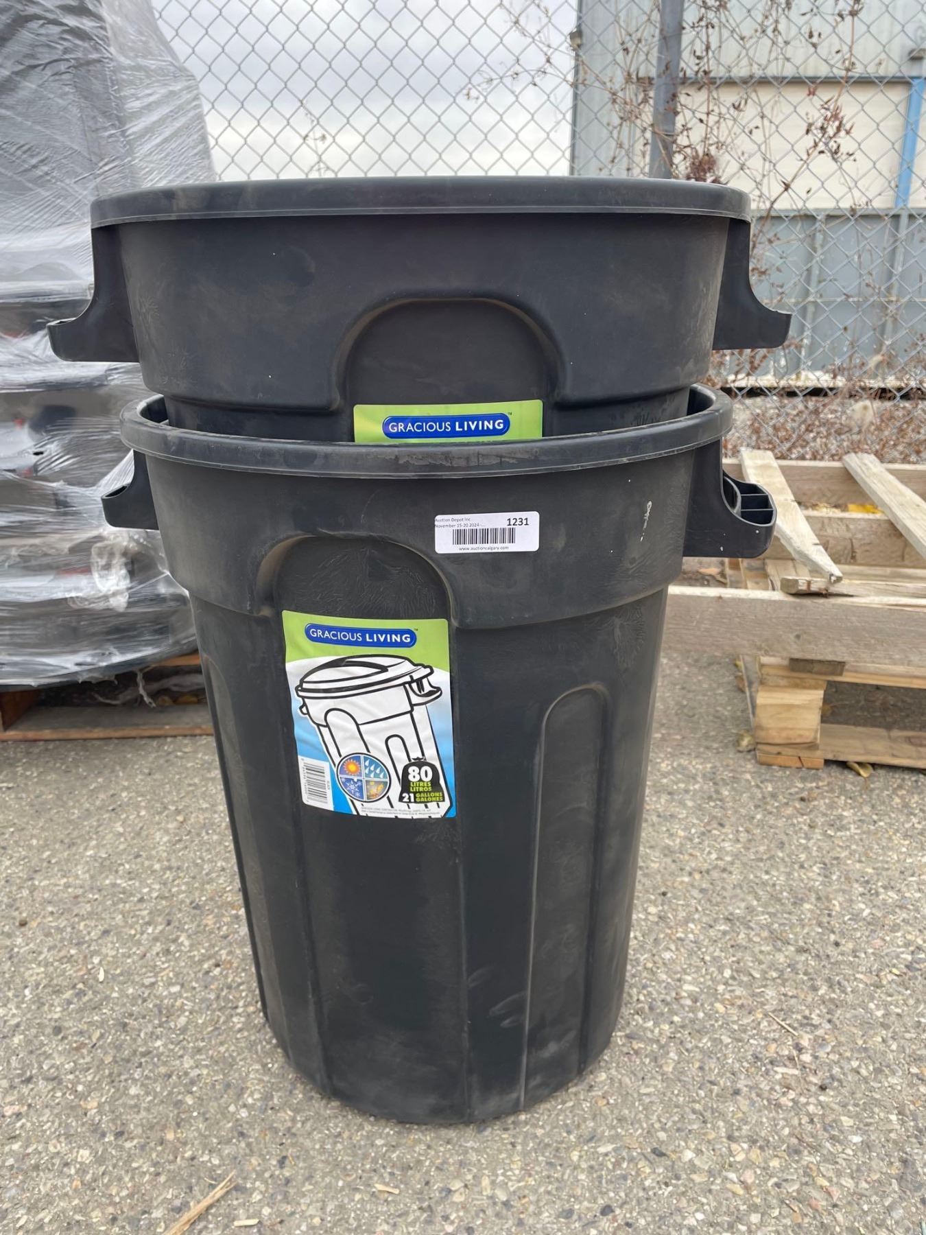 Lot of 2 Gracious Living All Weather 80 Liter Trash Cans - No Lids