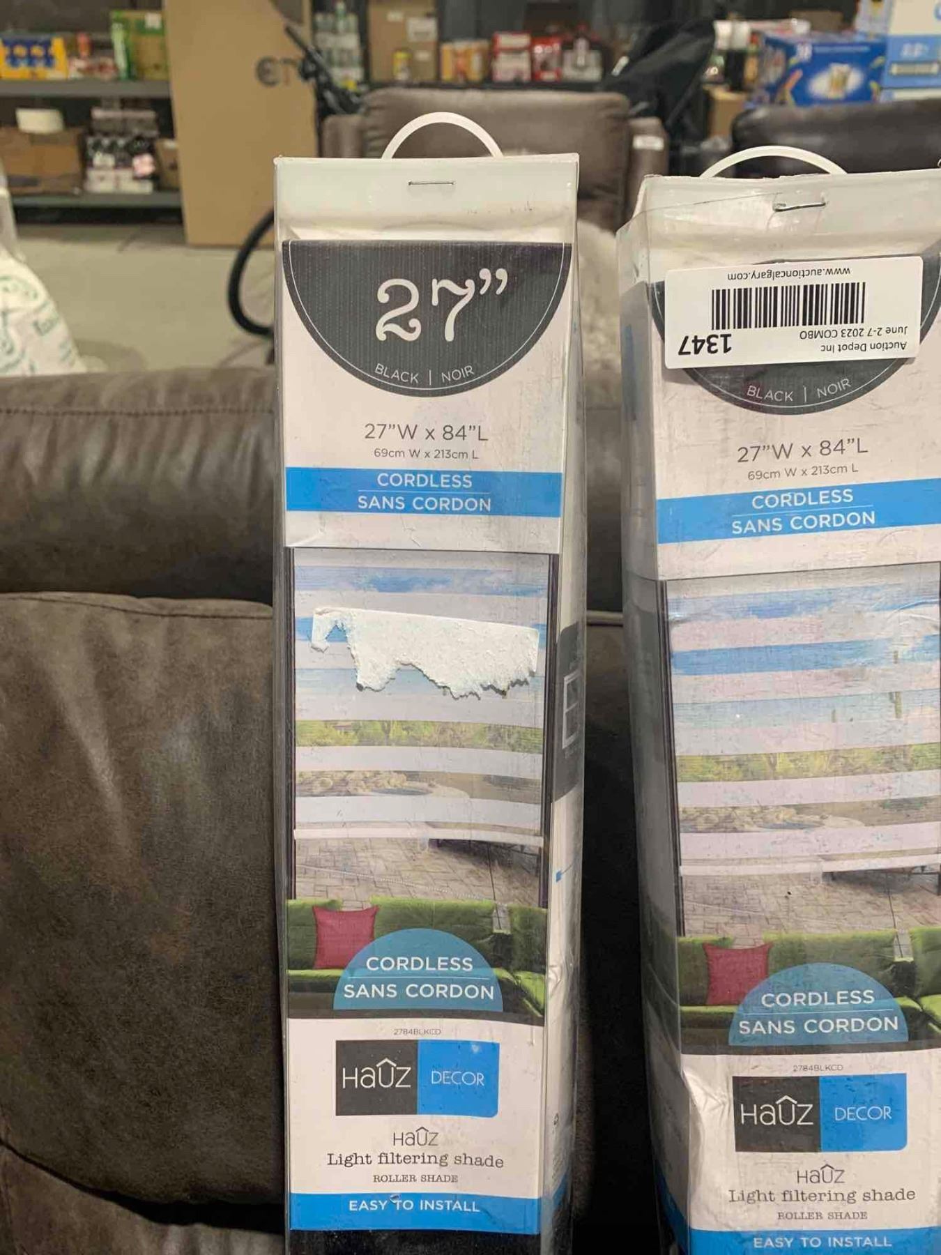 Lot of 2 Hauz Decor 27" X84" Cordless Window Blinds - Black