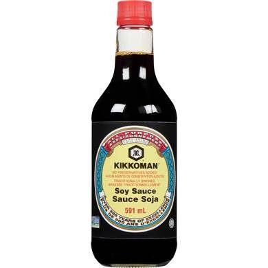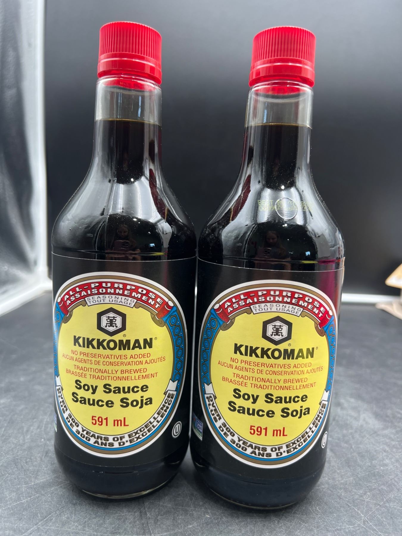 Lot of 2 – Kikkoman Soy Sauce Bottles, 591 mL Each
