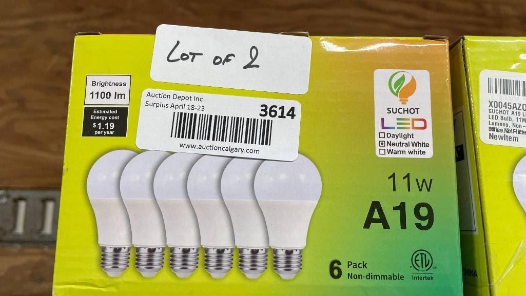Lot of 2 Suchot LED 11W A19 Light Bulb 6-Pack , Daylight, Non-Dimmable