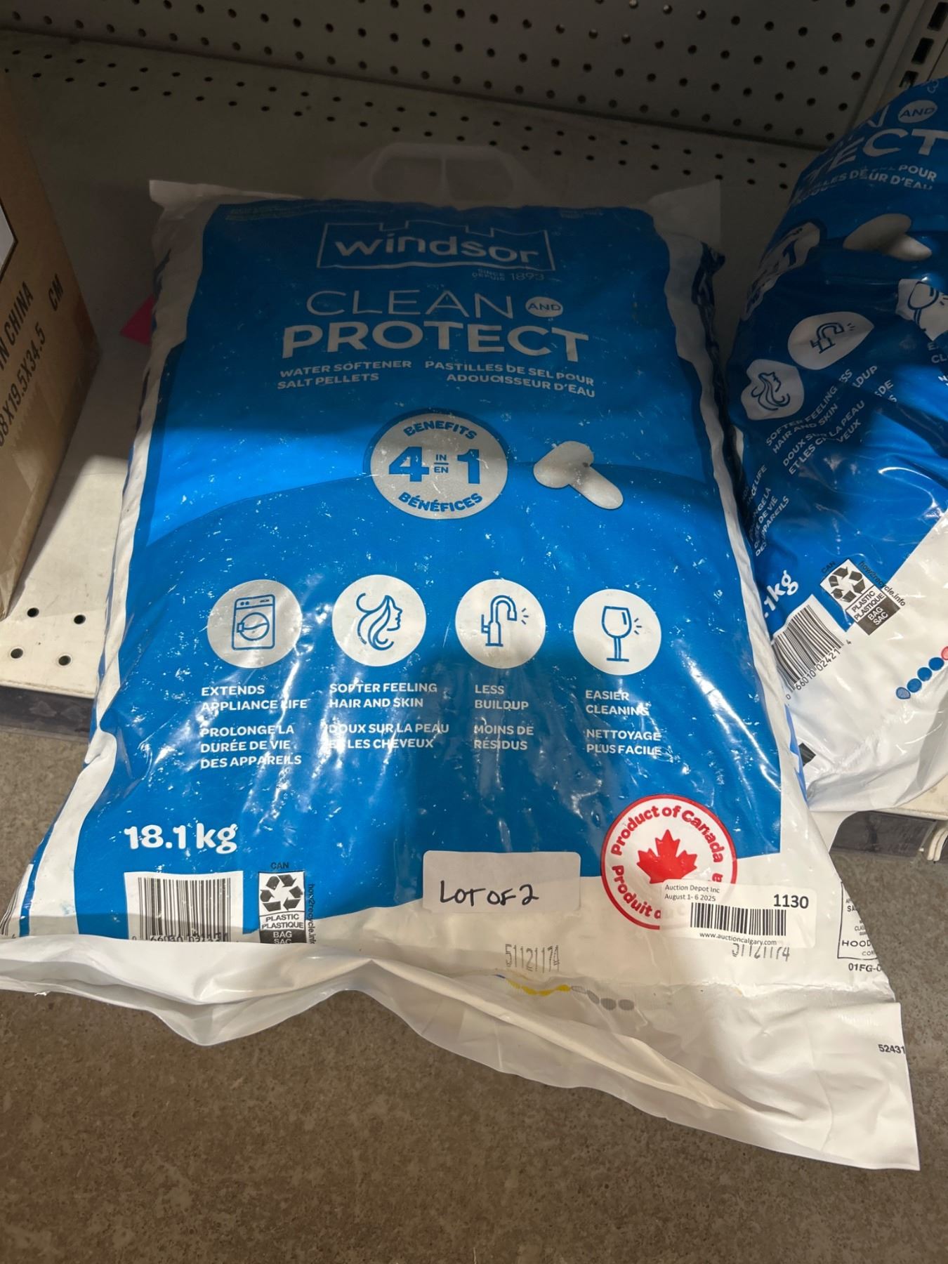 Lot of 2 Windsor Clean and Protect Water Softener Salt Bags, 18.1 Kg Each