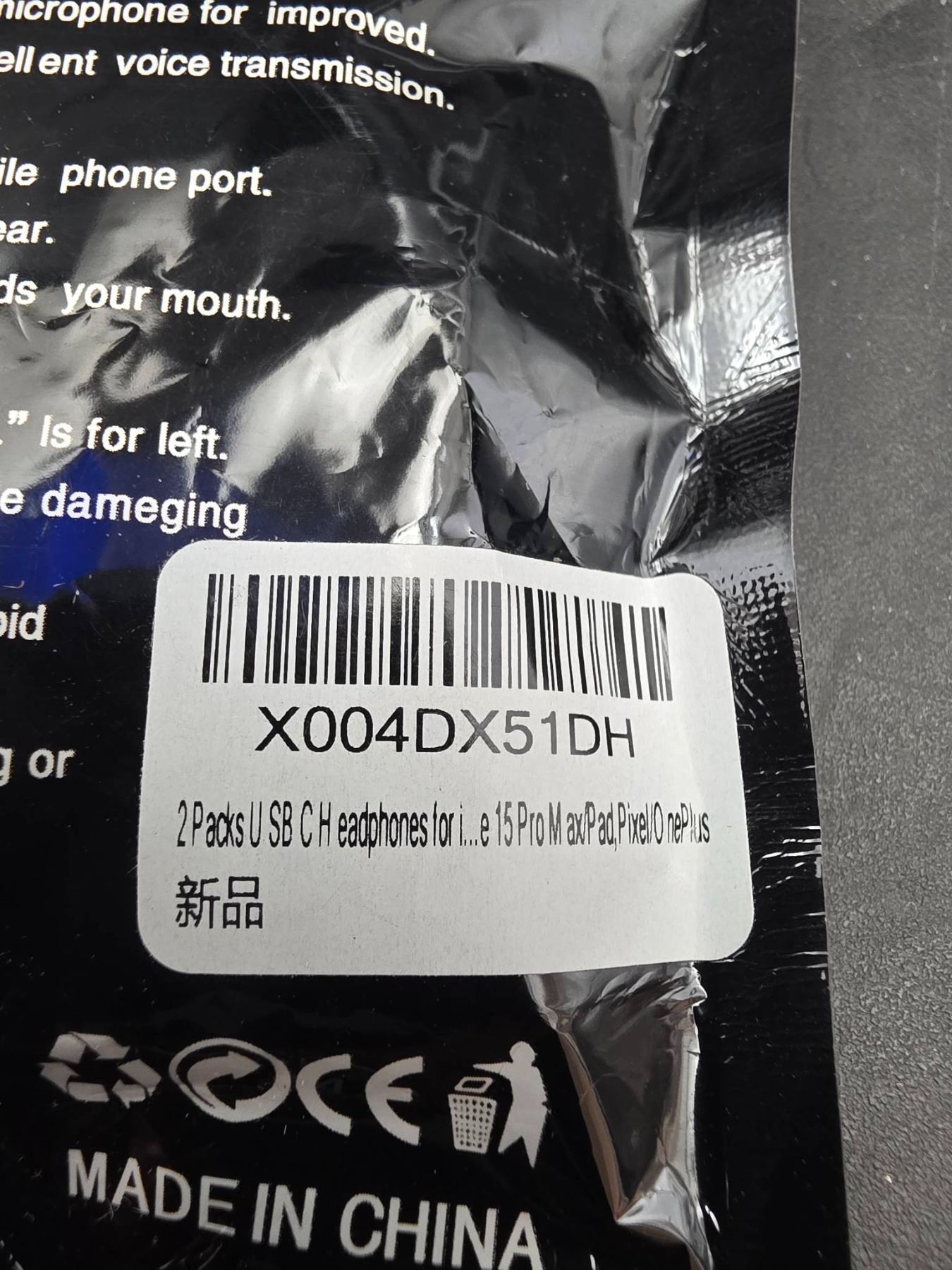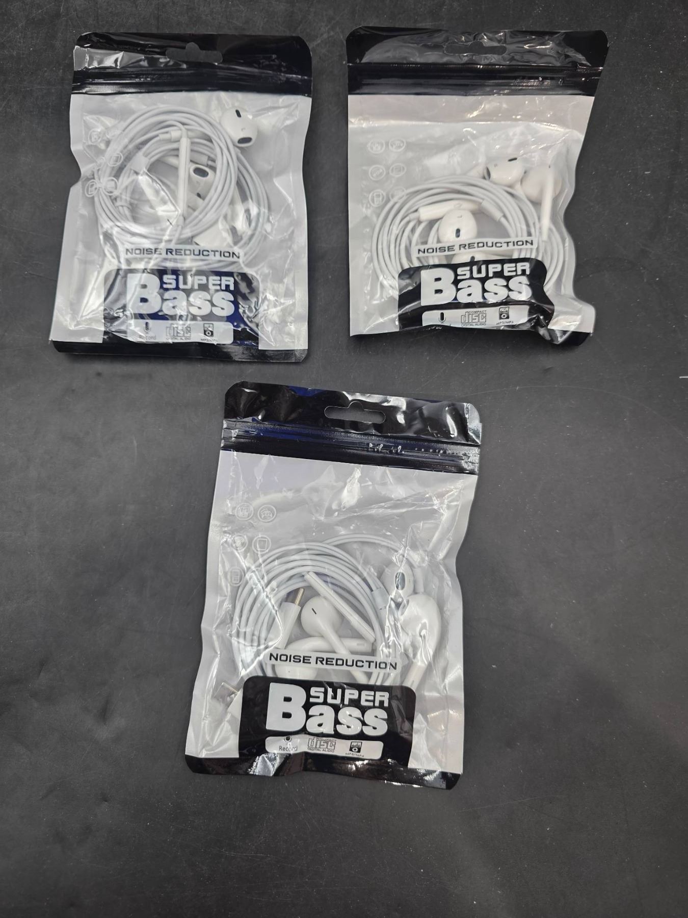 Lot of 3 – 2 pack Super Bass Earphones With Noise Reduction – Type USB-C