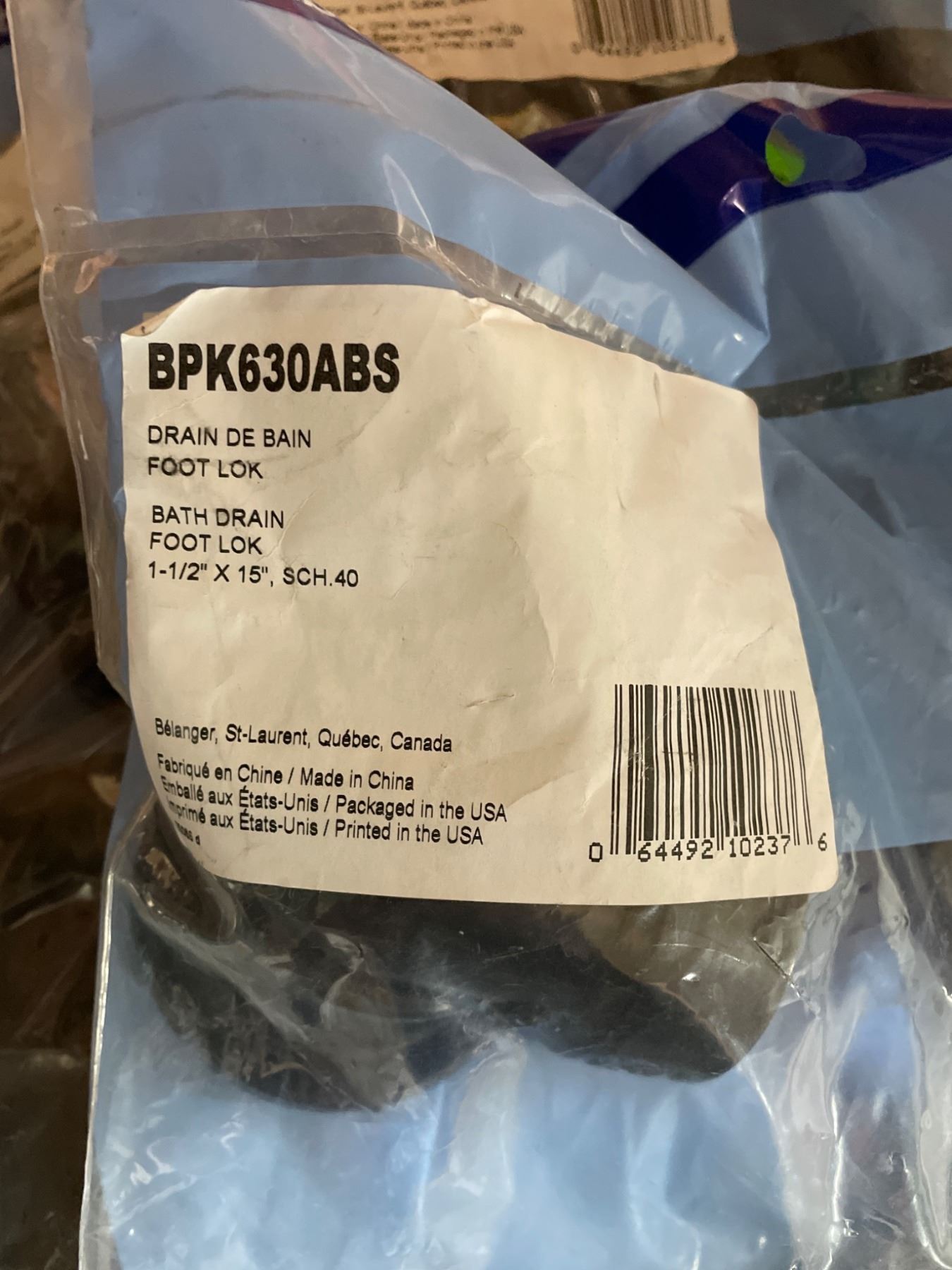 Lot of 3 BPK630ABS Bath Drain Foot Lok, 1-1/2 in x 15 in, SCH. 40