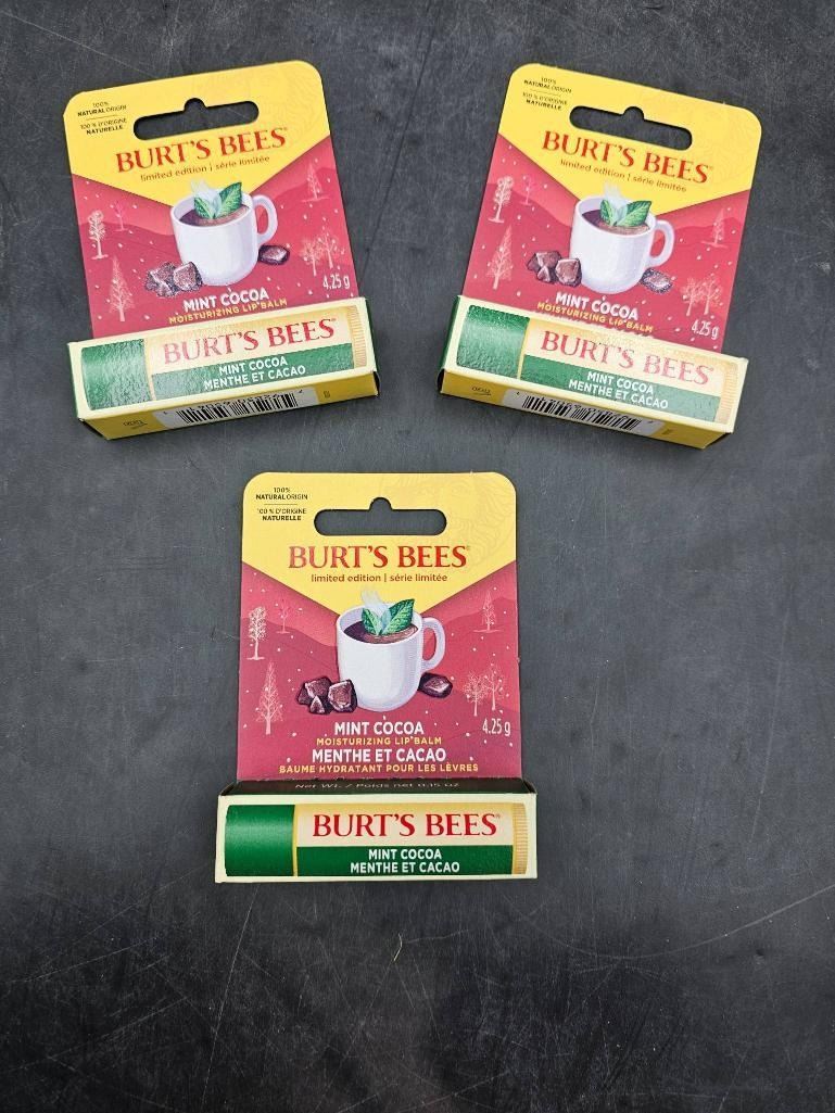 Lot of 3 Burt’s Bees Mint Cocoa Lip Balm Set