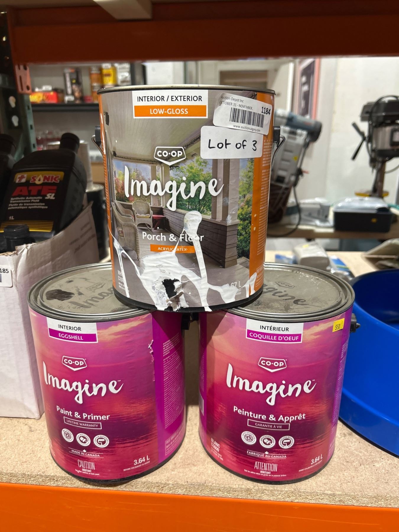 Lot of 3 Co-Op Imagine Paint Cans – Low-Gloss & Eggshell, 3.64 L & 3.67 L