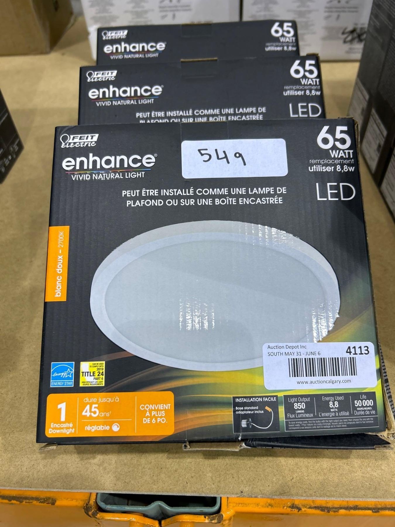 Lot of 3 Enhance Vivid Natural Light 65 Watt LED Recessed Downlight with Trim