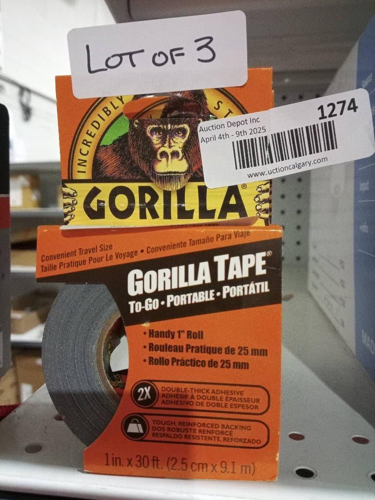 Lot of 3 Gorilla Tape Rolls – 1 inch x 30 feet
