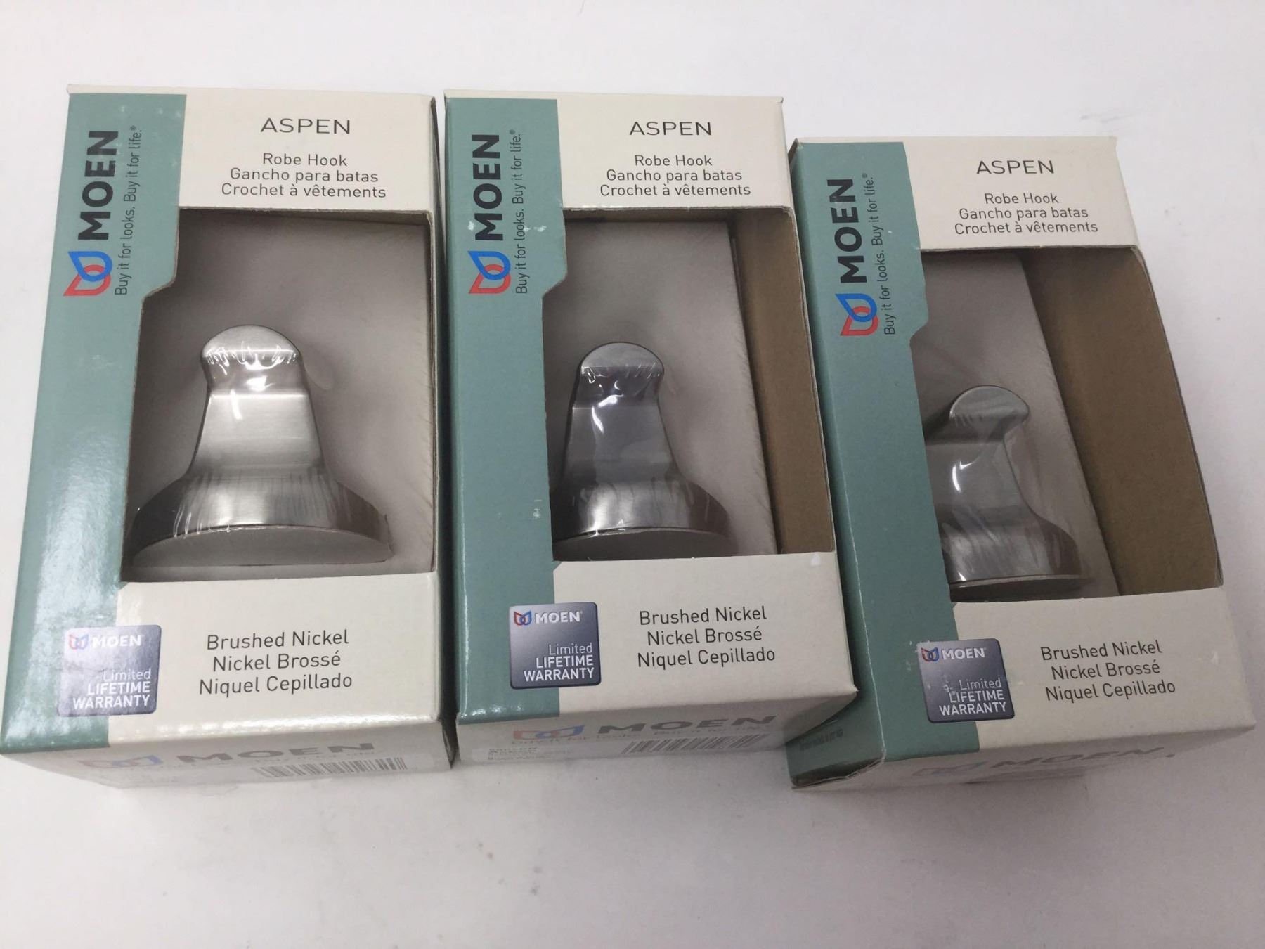 Lot of 3 Moen Brushed Nickel Robe Hooks