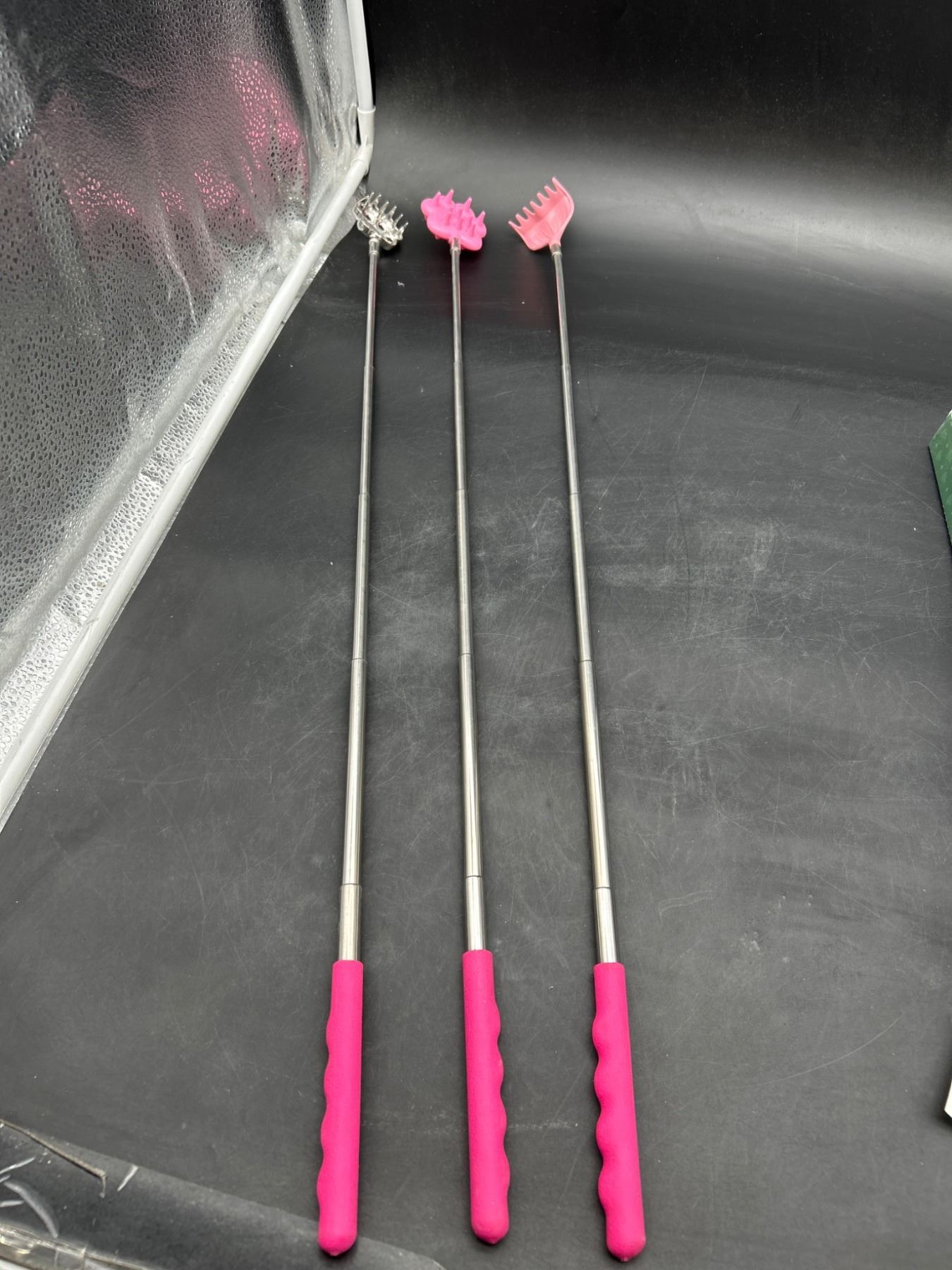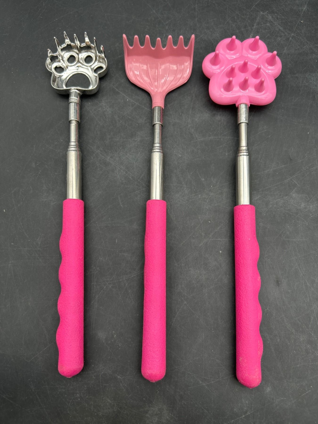 Lot of 3 Telescoping Back Scratchers with Paw-Themed Heads and Pink Handles