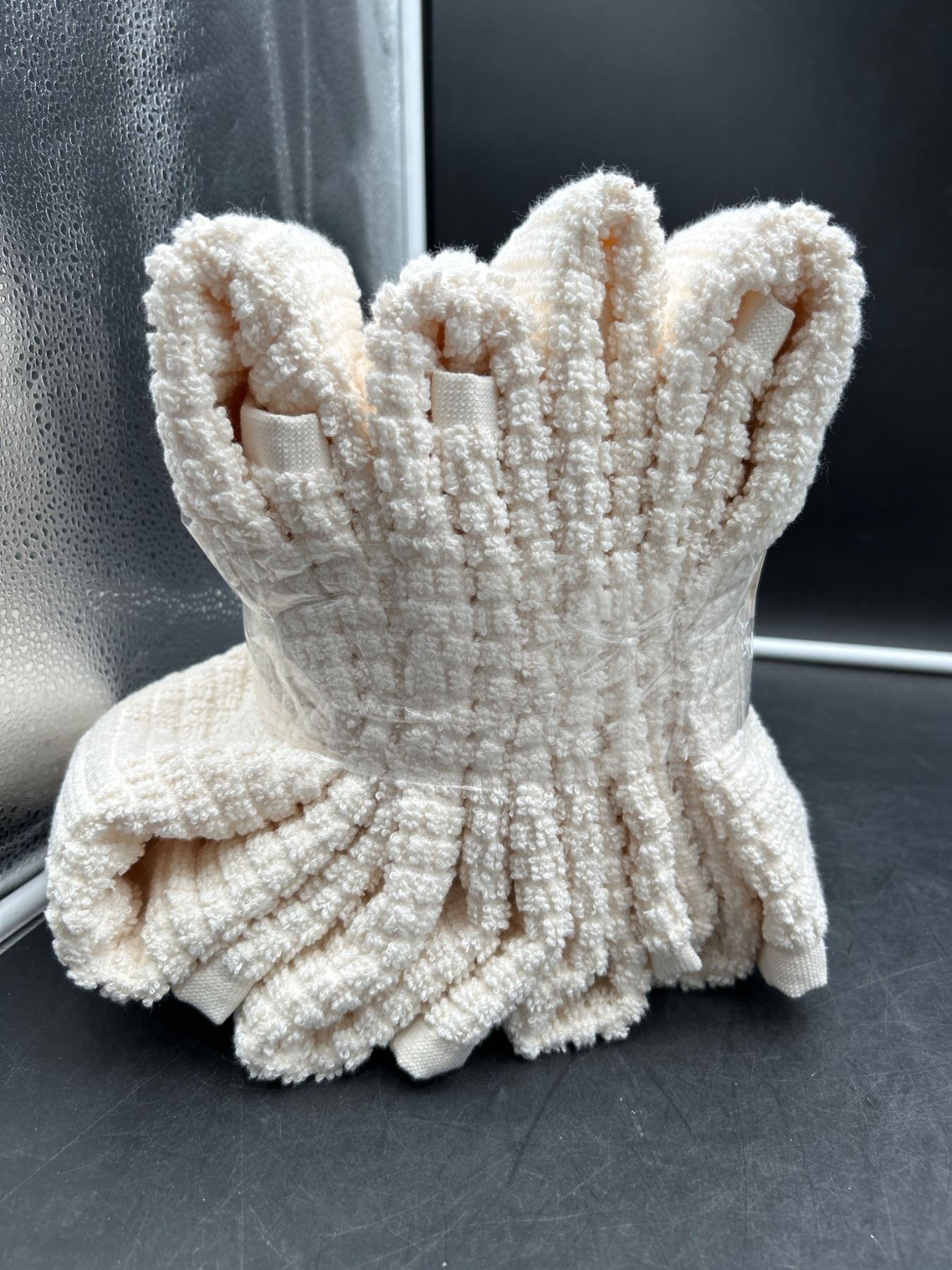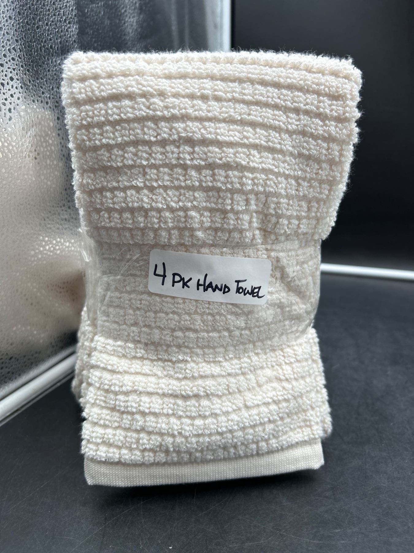 Lot of 4 Pack Beige Hand Towels with Woven Texture Design