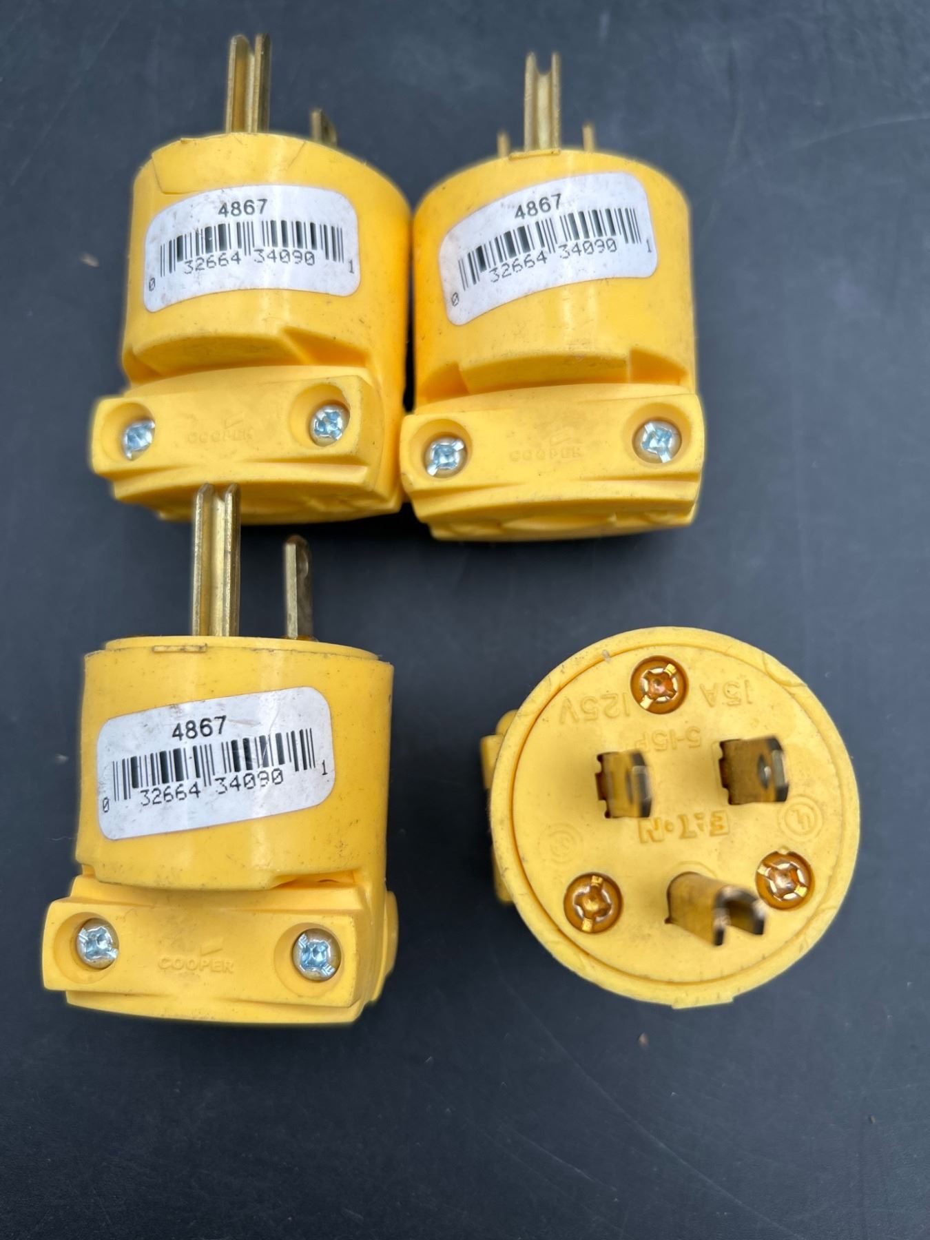 Lot of 4 Yellow Electrical Connectors, Model 4867, 3-Prong Design