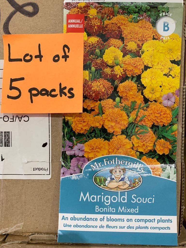 Lot of 5 Packs of Mr. Fothergill’s Marigold Souci Bonita Mixed Seeds