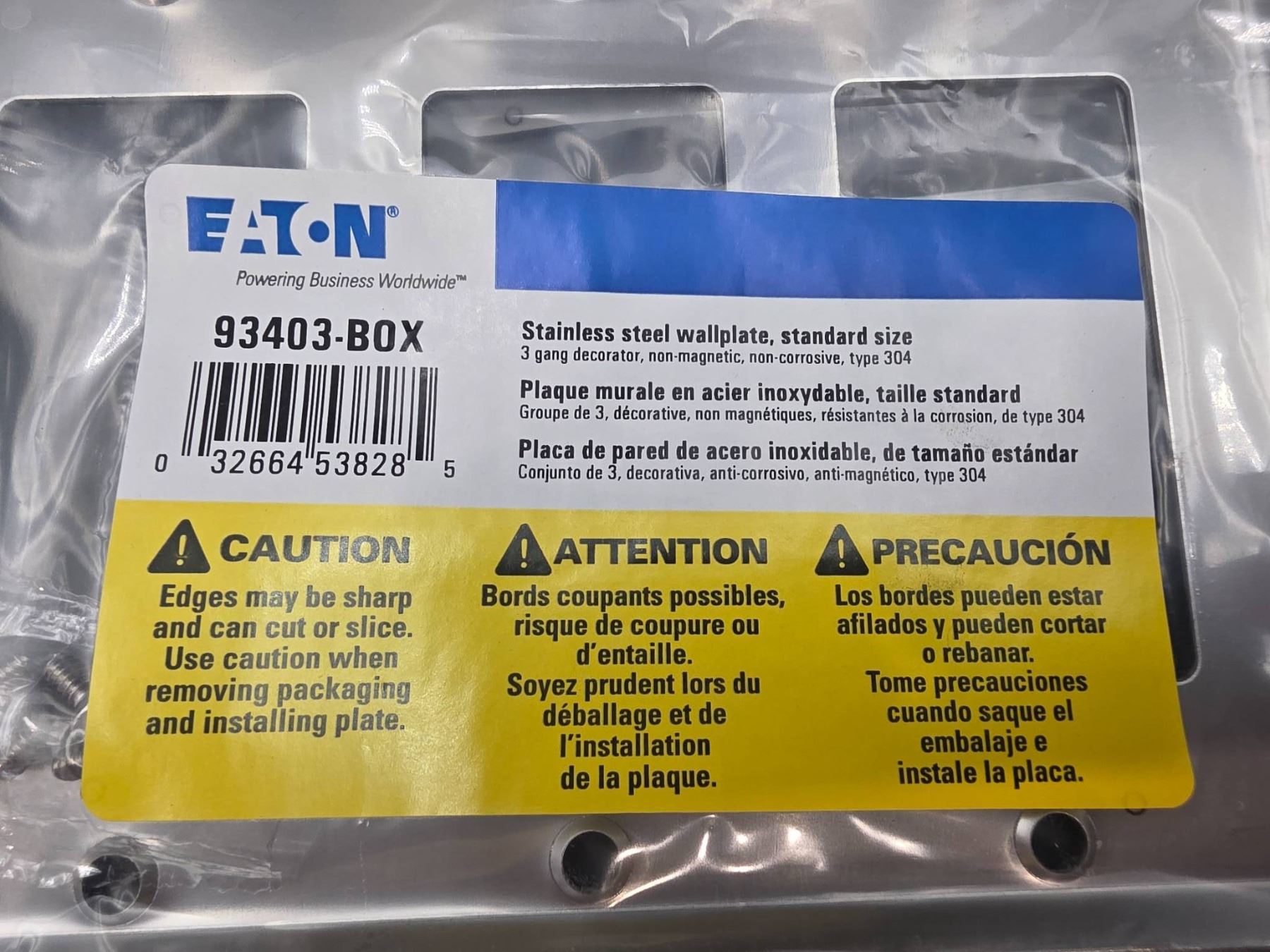 Lot of 6 – Eaton 93403B-BOX Stainless Steel Wall Plates