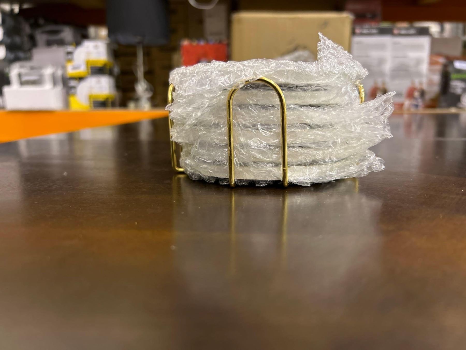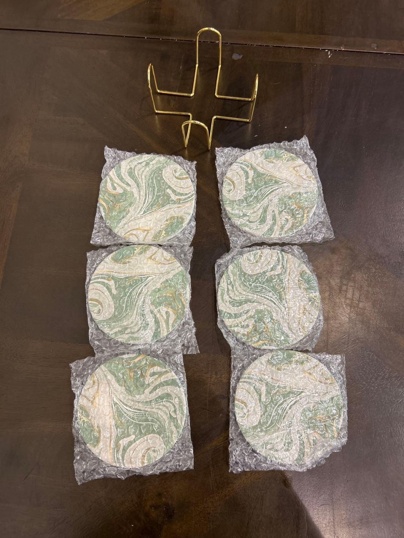 Lot of 6 drink coasters with holding rack