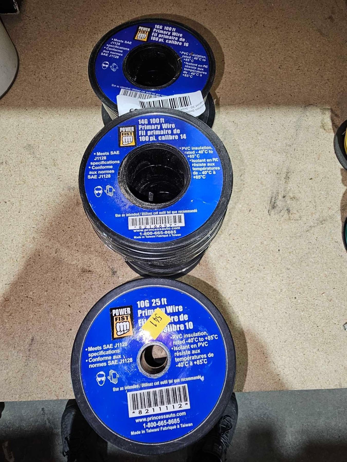 Lot of 9 Assorted Gauge Primary Wire - Black
