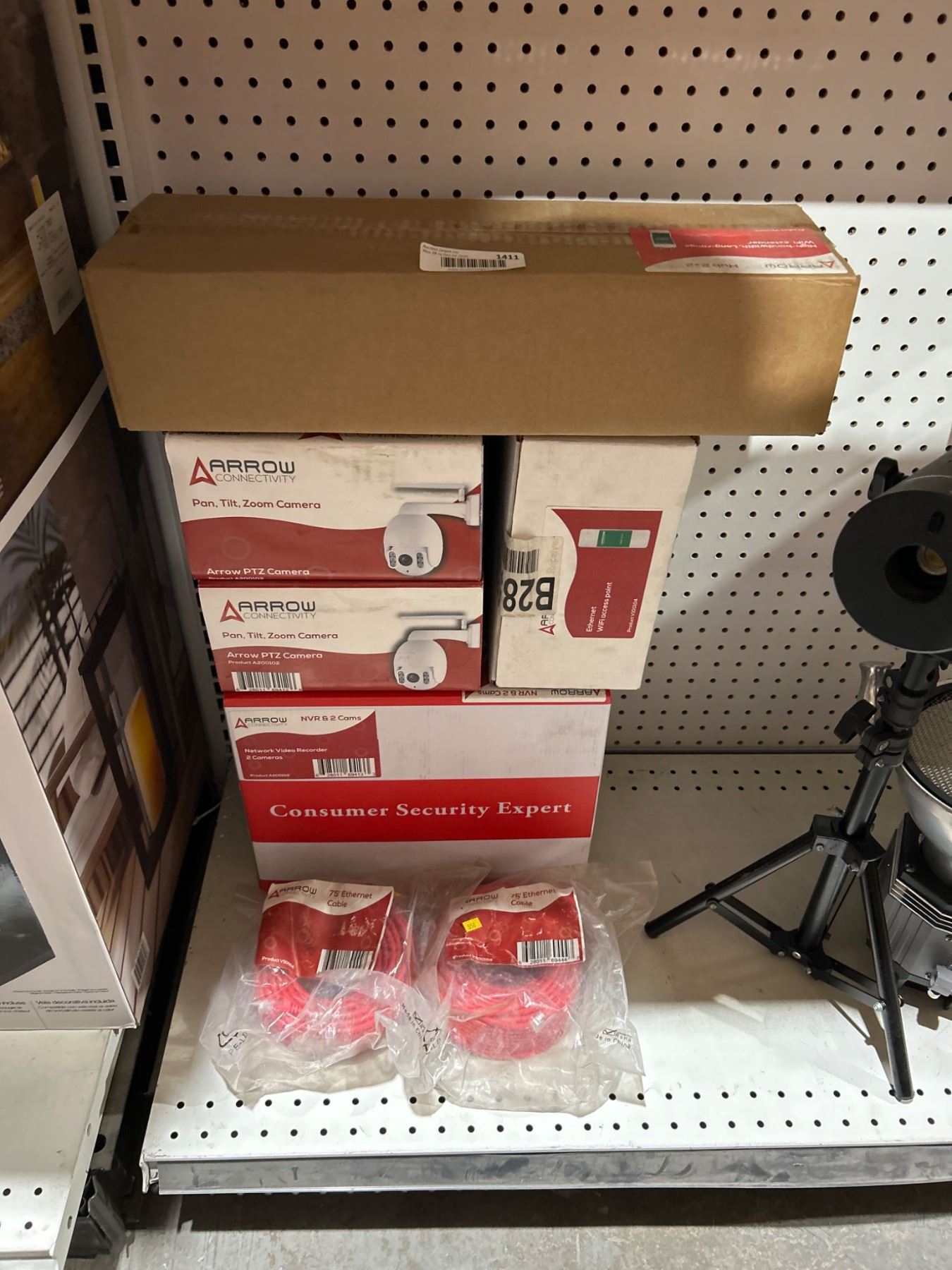 Lot of Arrow Security System Components- Hub, Cameras, Cables, and NVR Network Components