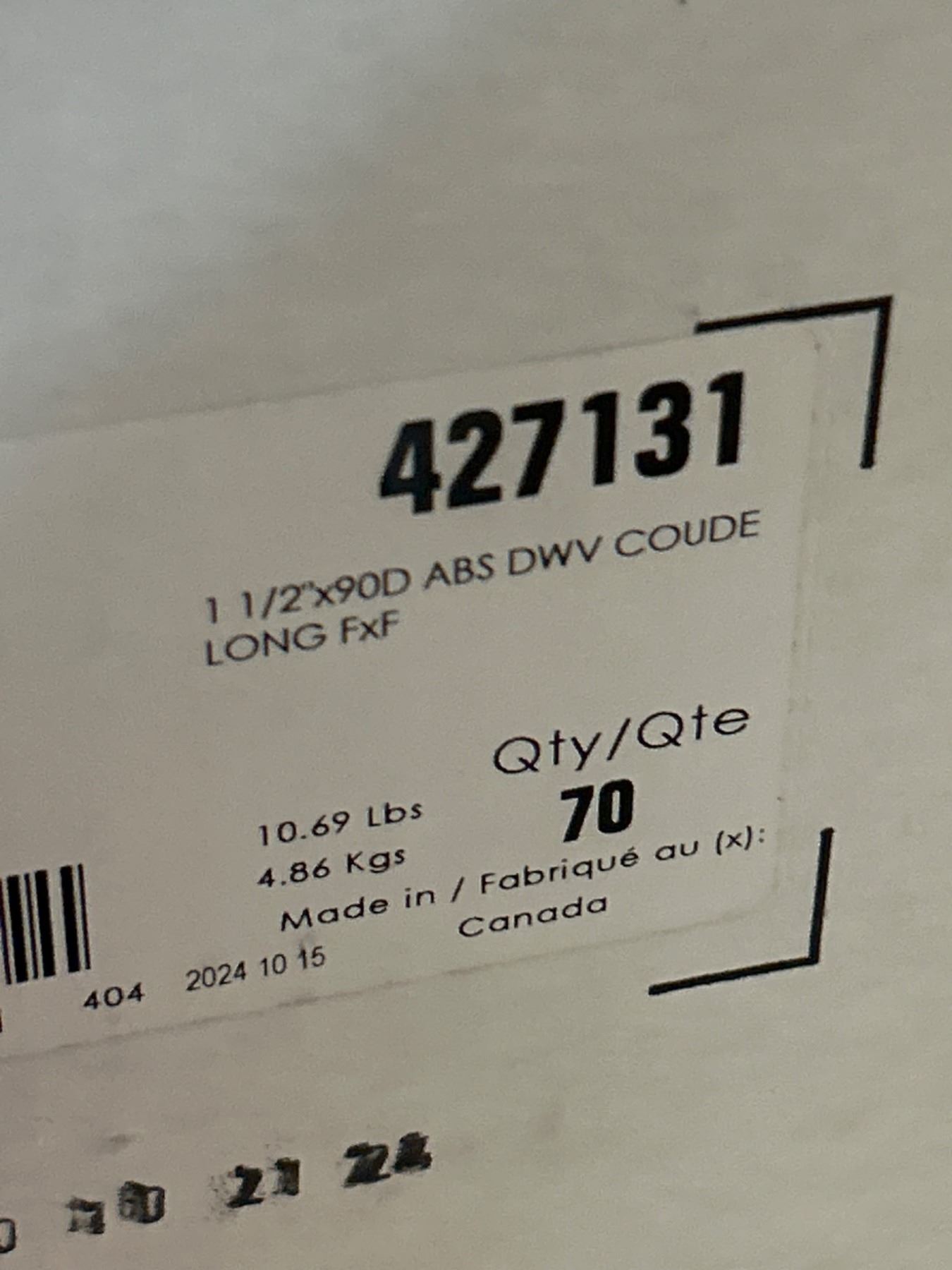Lot of IPEX 1-1/2 in. ABS DWV 90 Degree Long Elbow Hub Fitting