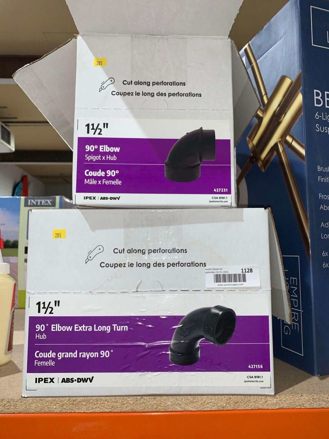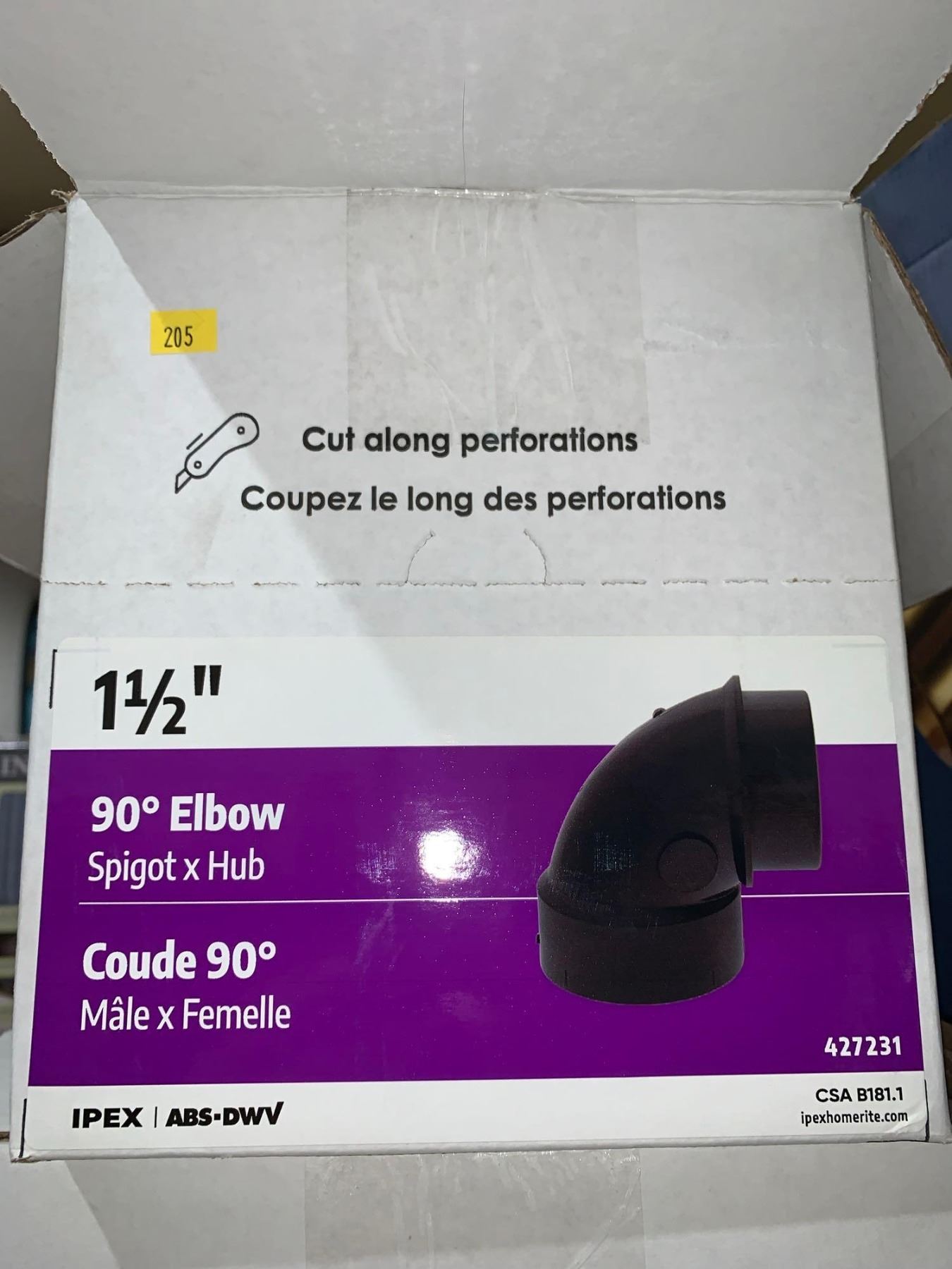Lot of Ipex ABS-DWV 1 1/2" 90° Elbow Extra Long Turn Hub & 1 1/2" Elbow Spigot x Hub