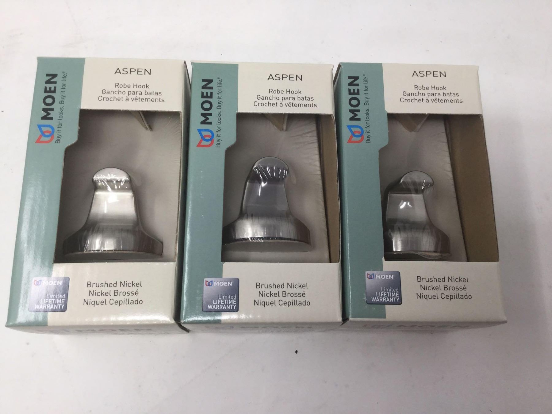 Lot of Moen Brushed Nickel Robe Hooks (3)