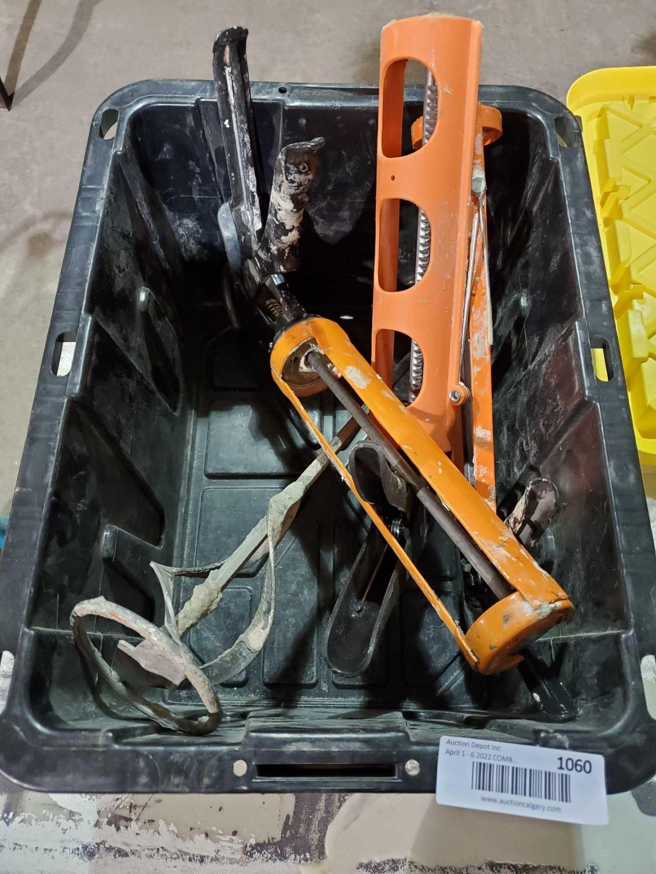 Lot of caulking guns and tote