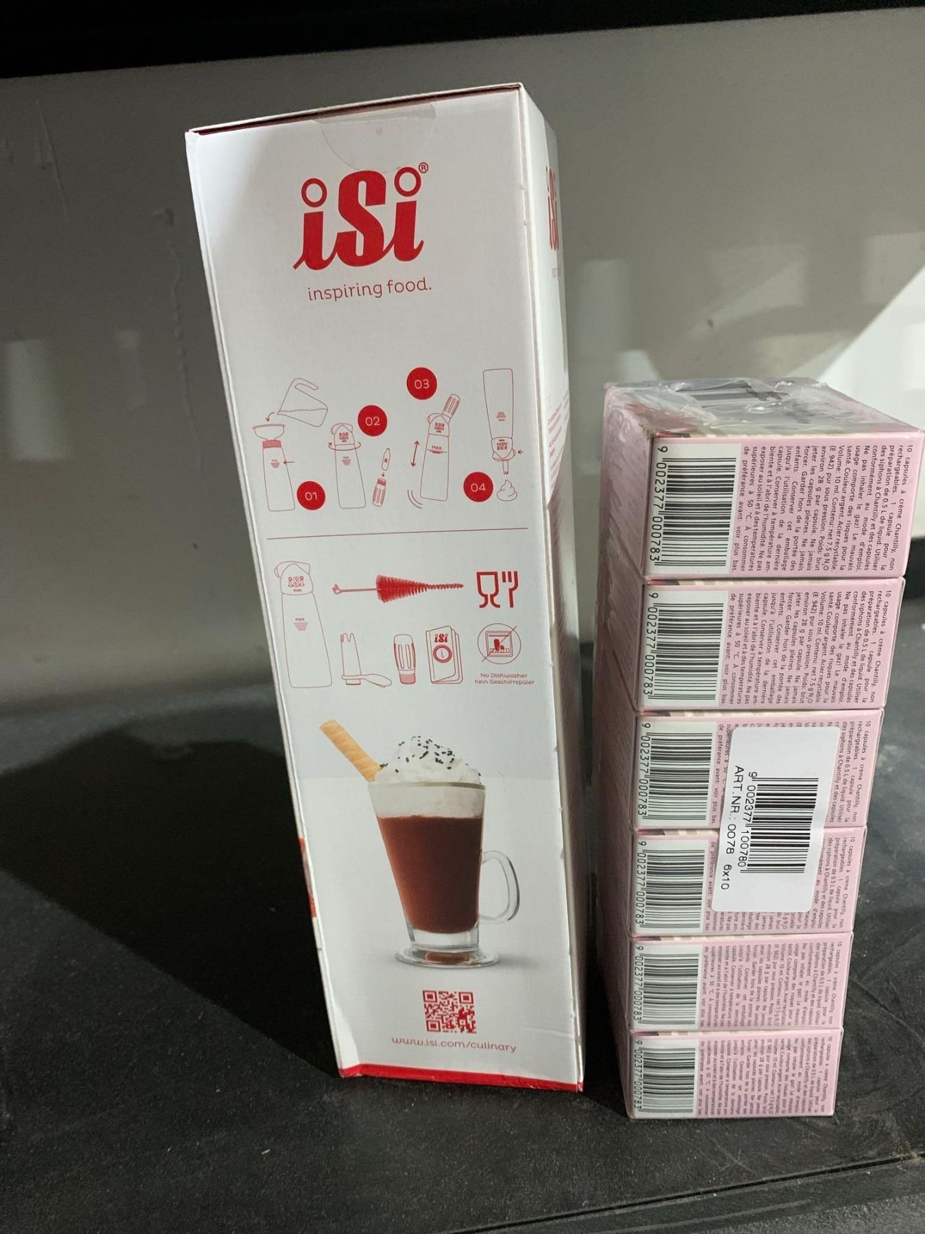 Lot of iSi whip cream dispenser with 60 spark whip replacement cartridges
