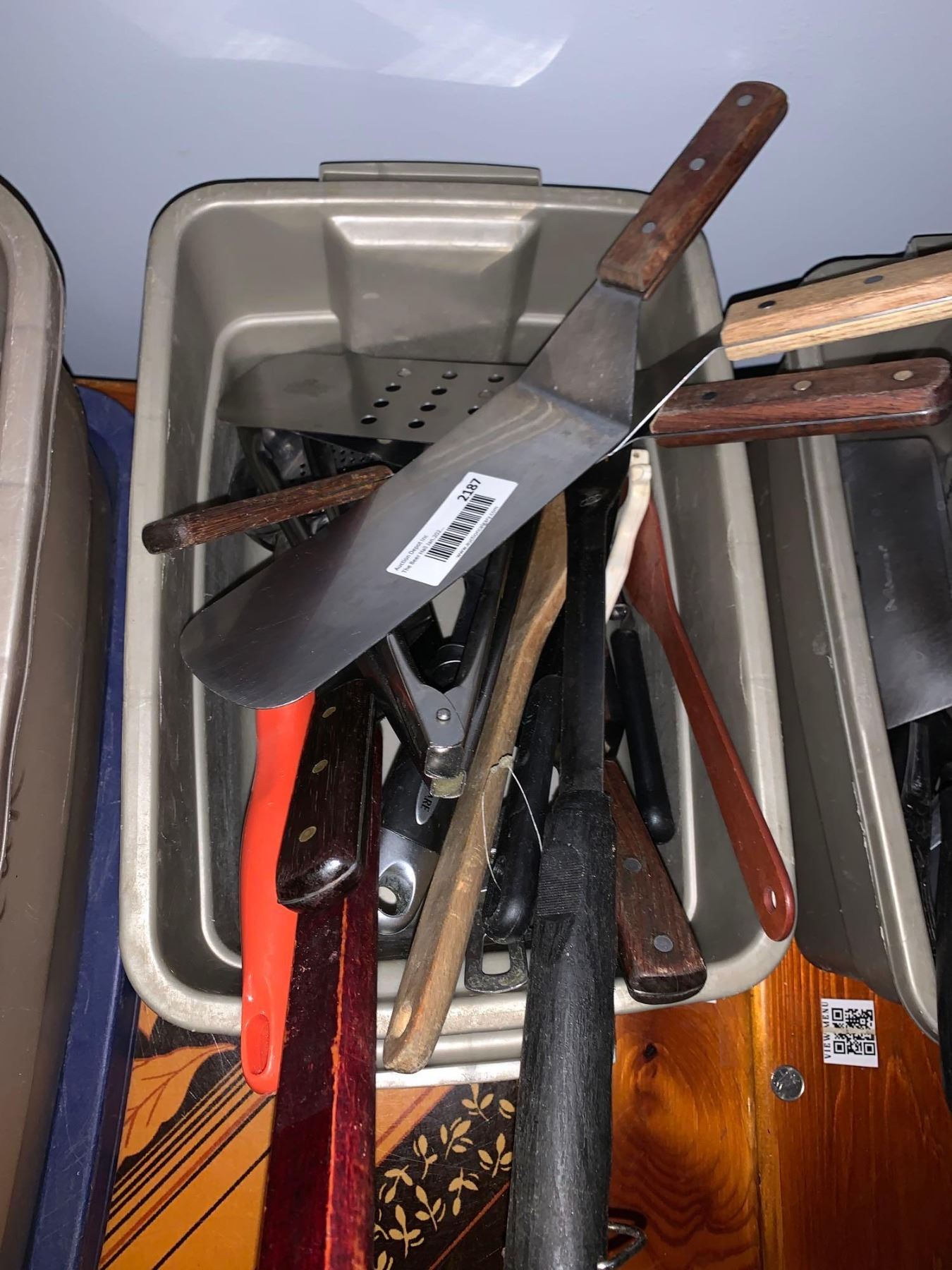 Lot of restaurant spatulas and supplies as pictured