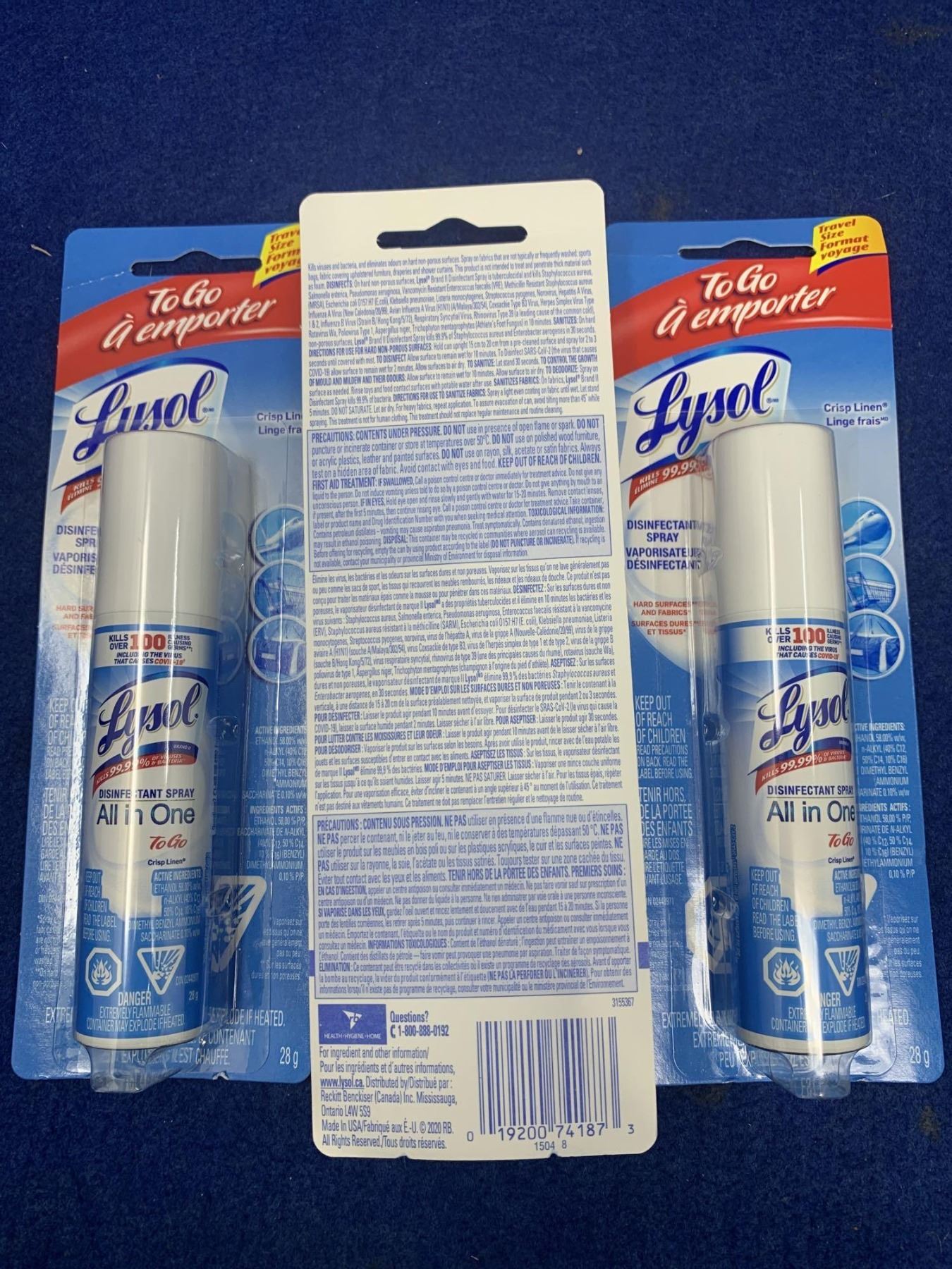 Lysol Disinfectant Spray- All in One To Go(3 x 28g)