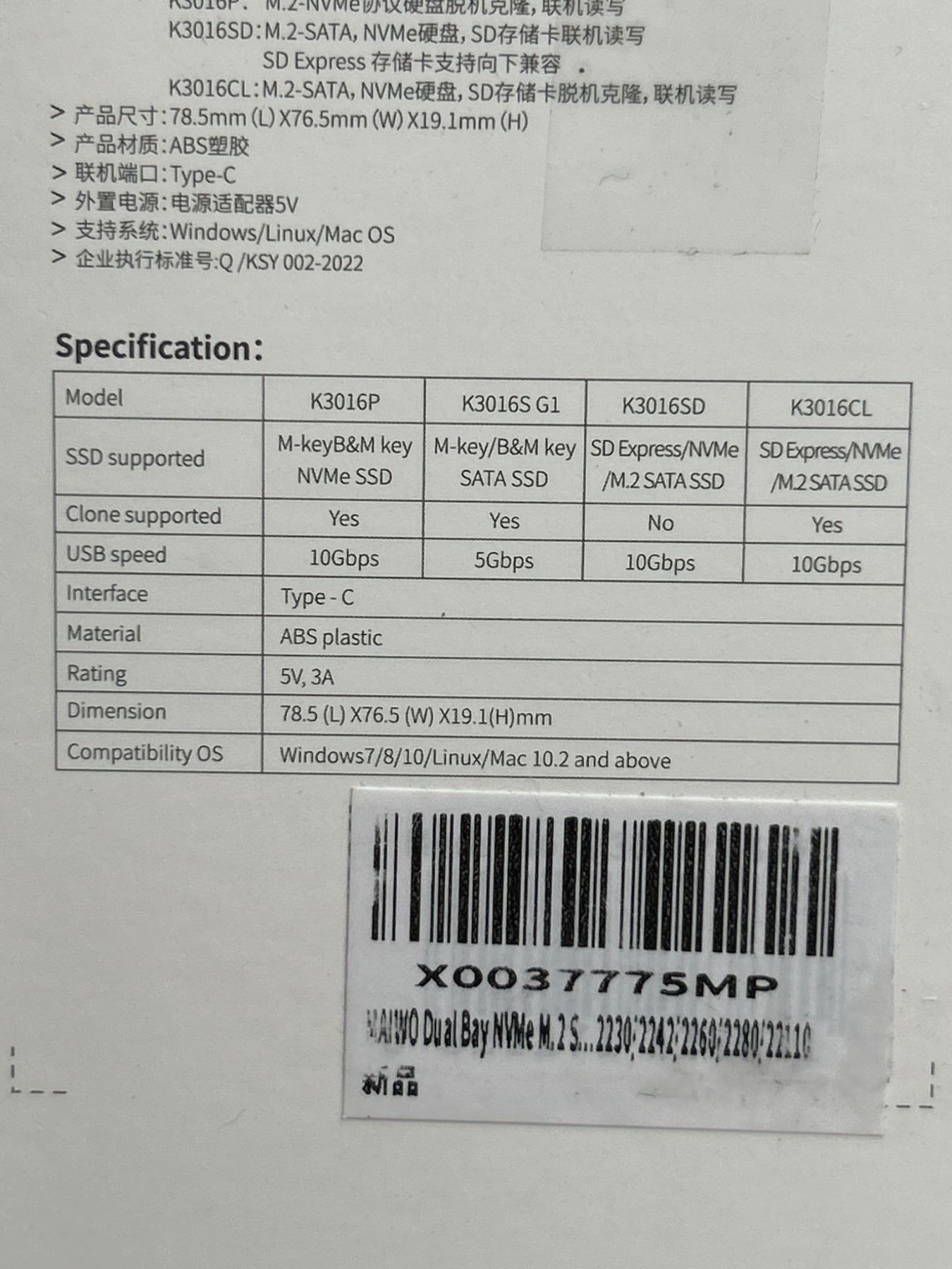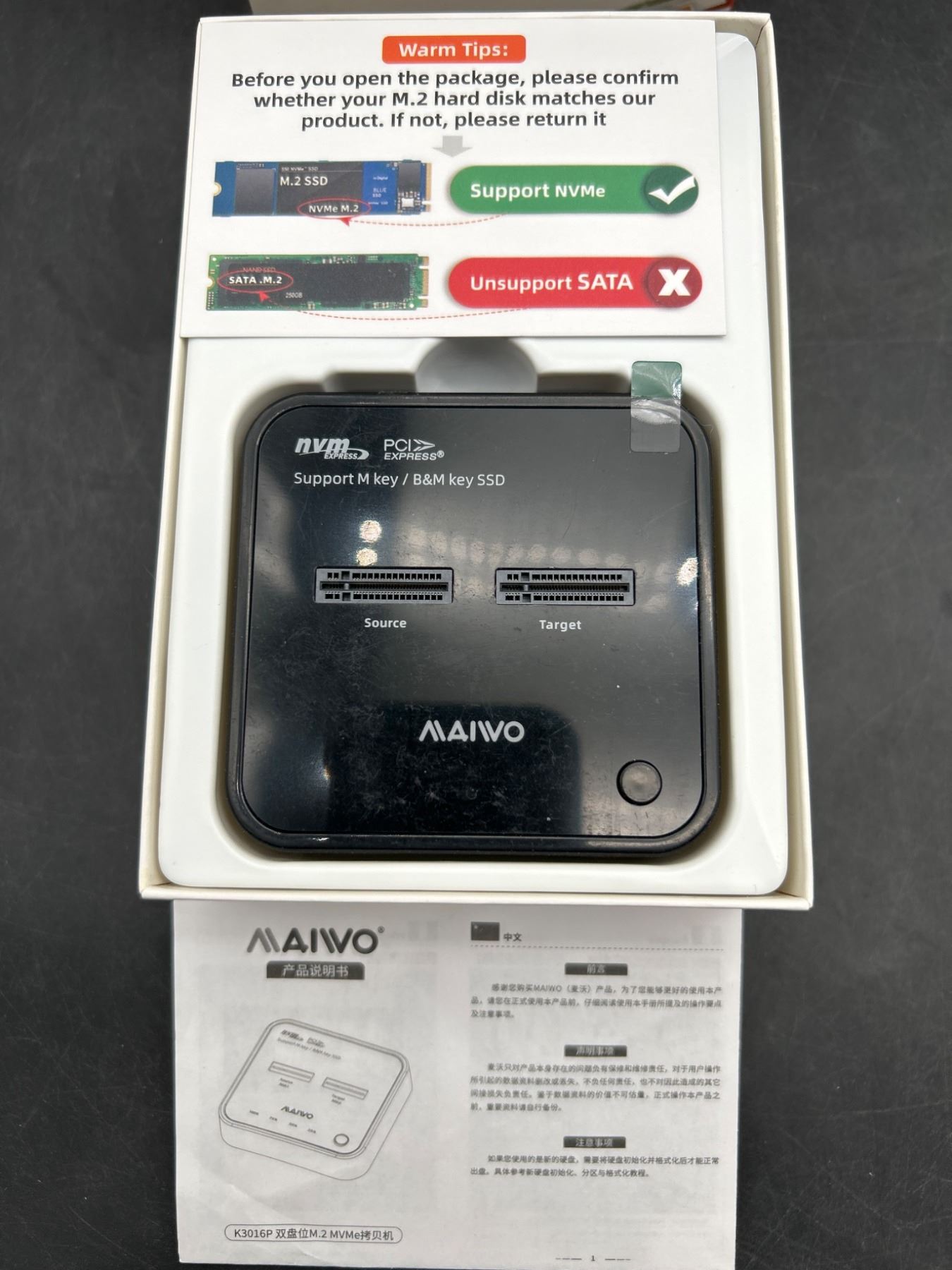 Maiwo Dual Bay NVMe M.2 SSD Docking Station K3050P