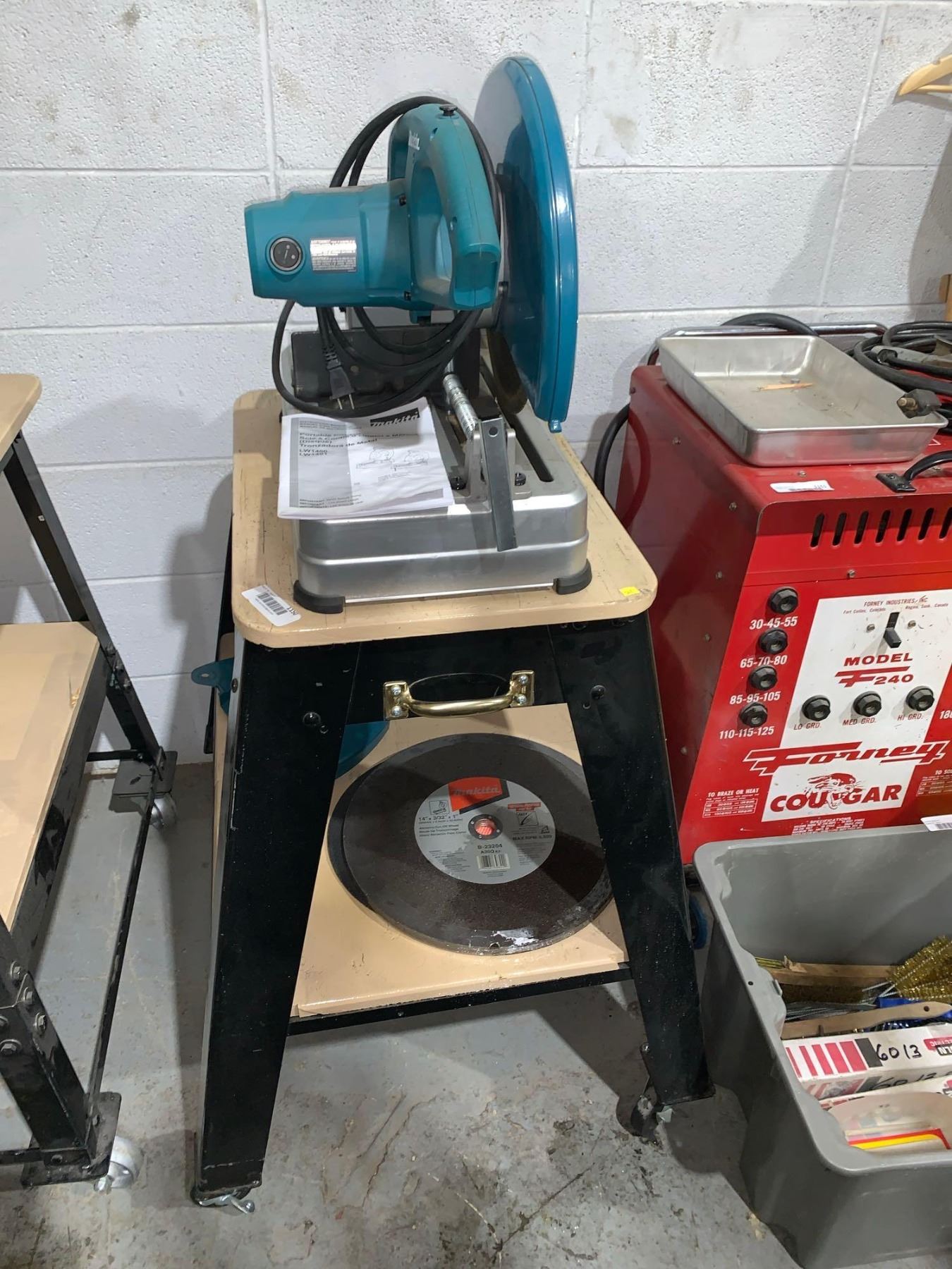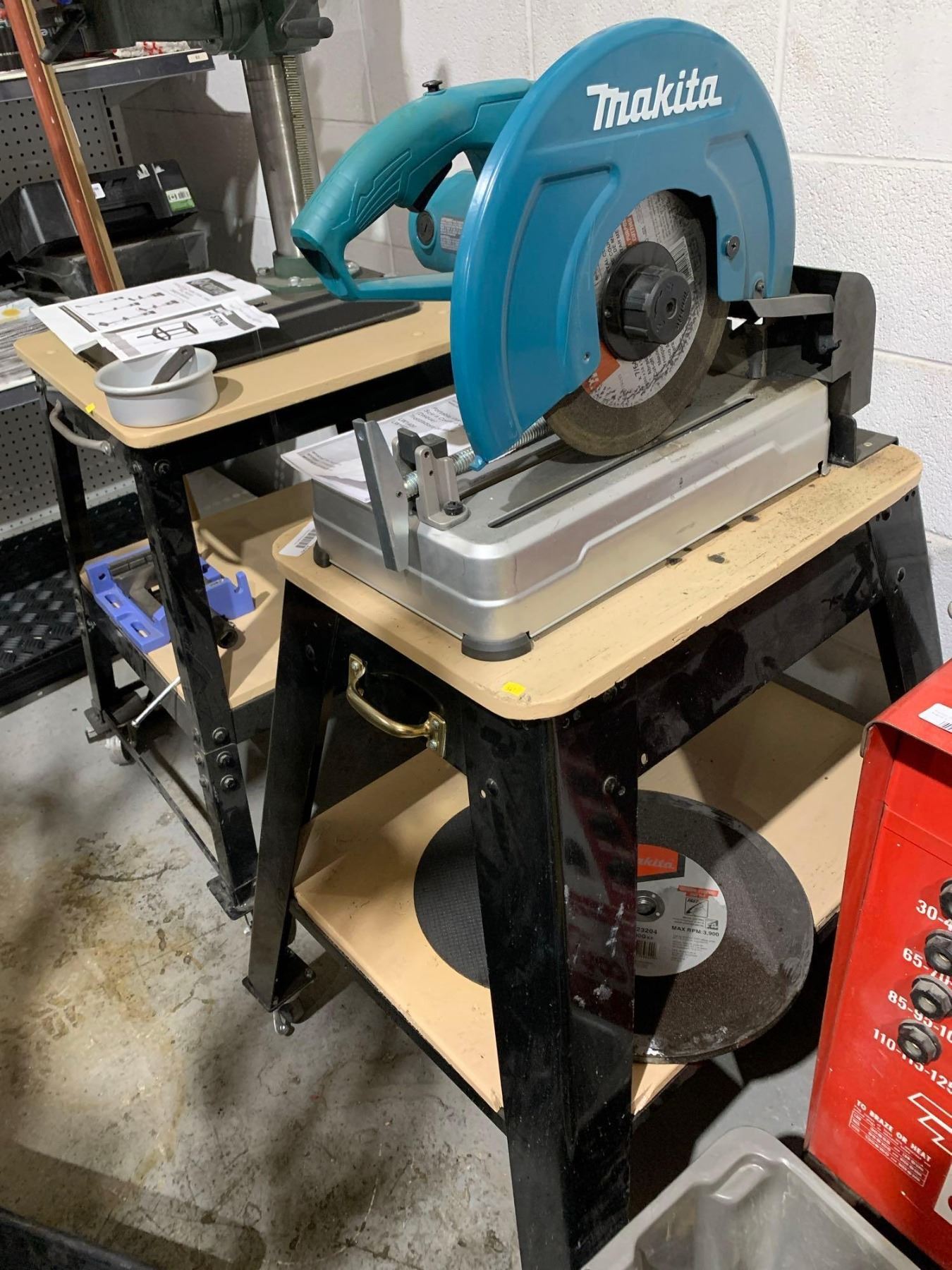 Makita Portable Cut-Off Saw On Tool Stand with Extra Blades