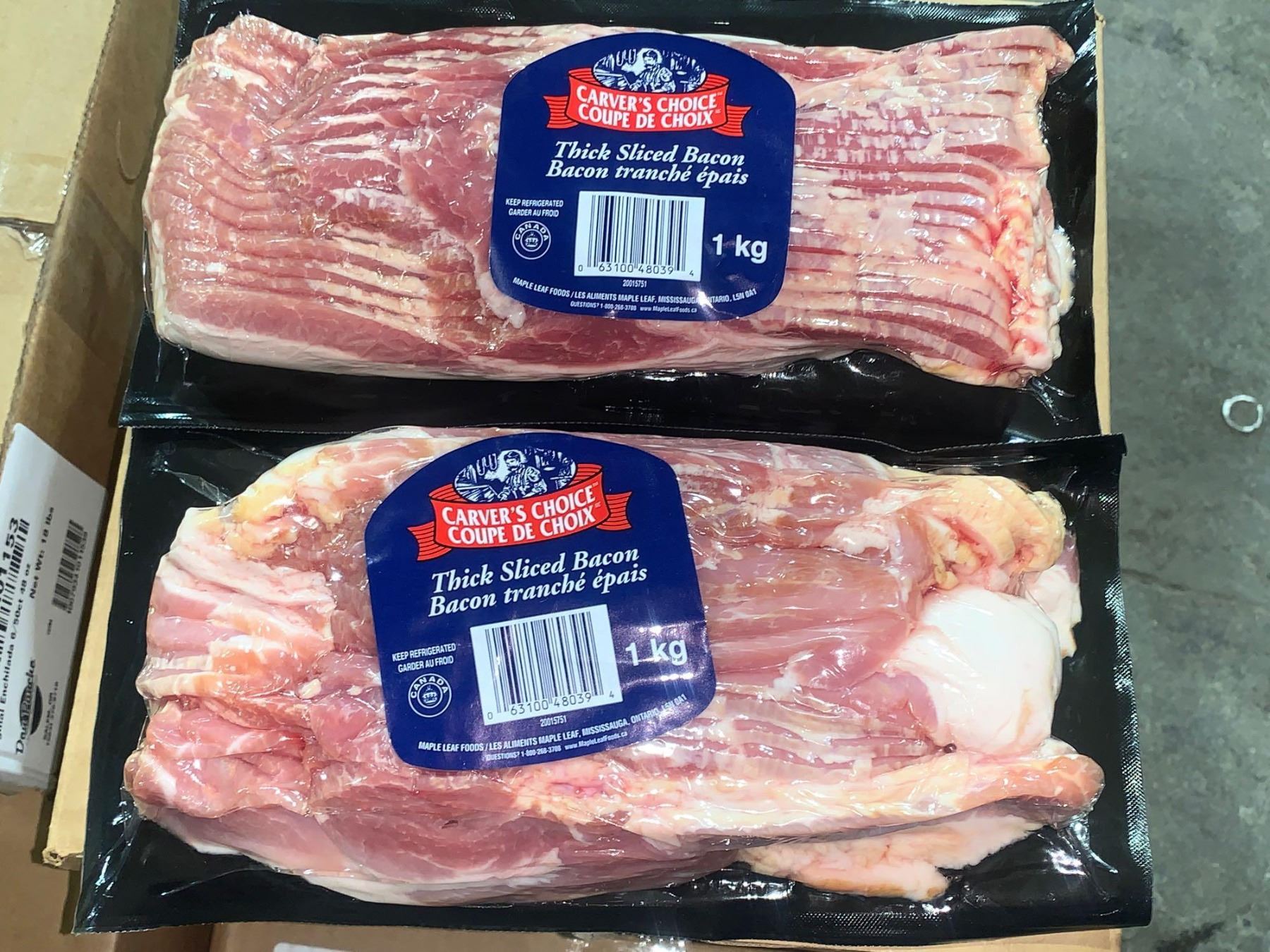 Maple Leafs Carvers Choice Thick Sliced Bacon Lot of 2 x 1KG