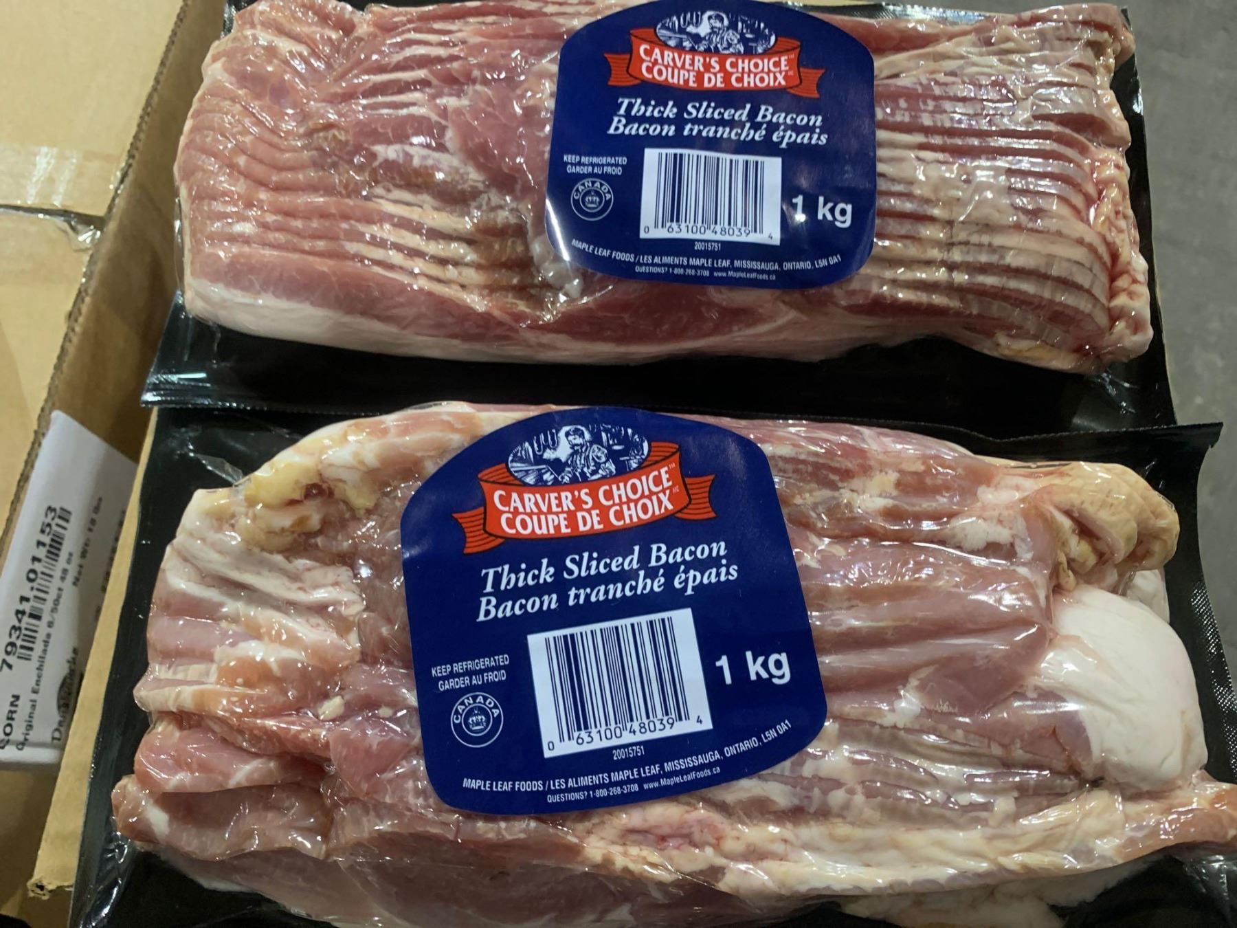Maple Leafs Carvers Choice Thick Sliced Bacon Lot of 2 x 1KG