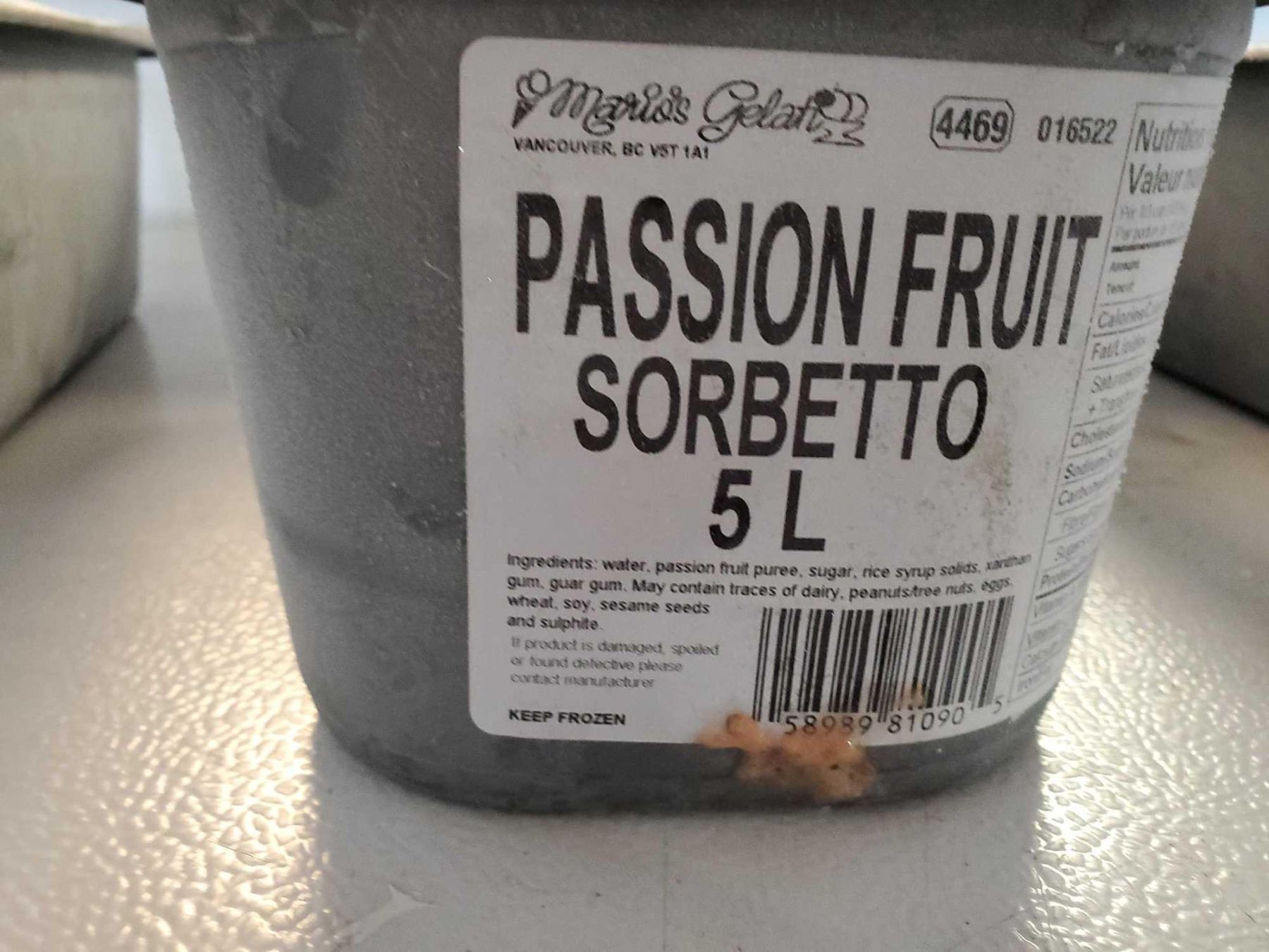 Mario's Gelati Passion Fruit Sorbetto 5L