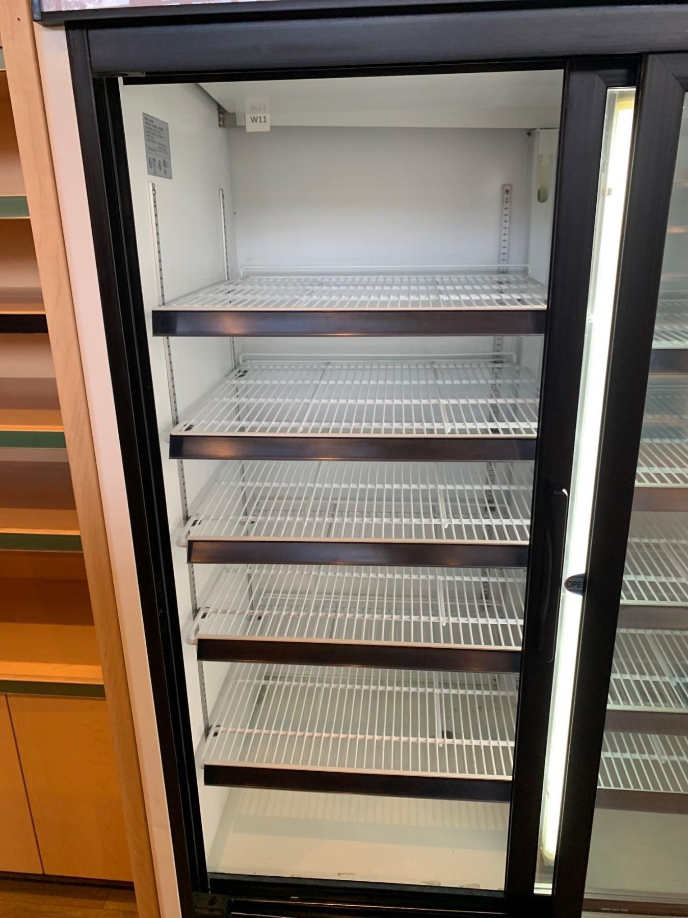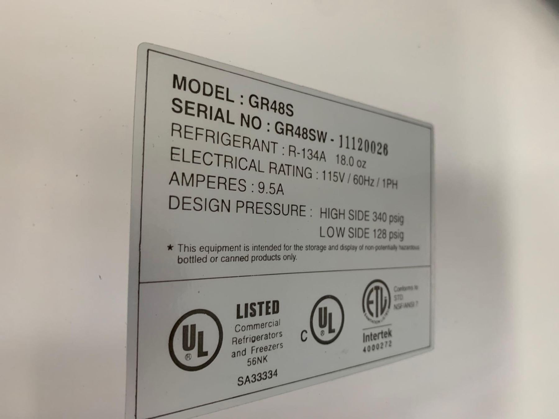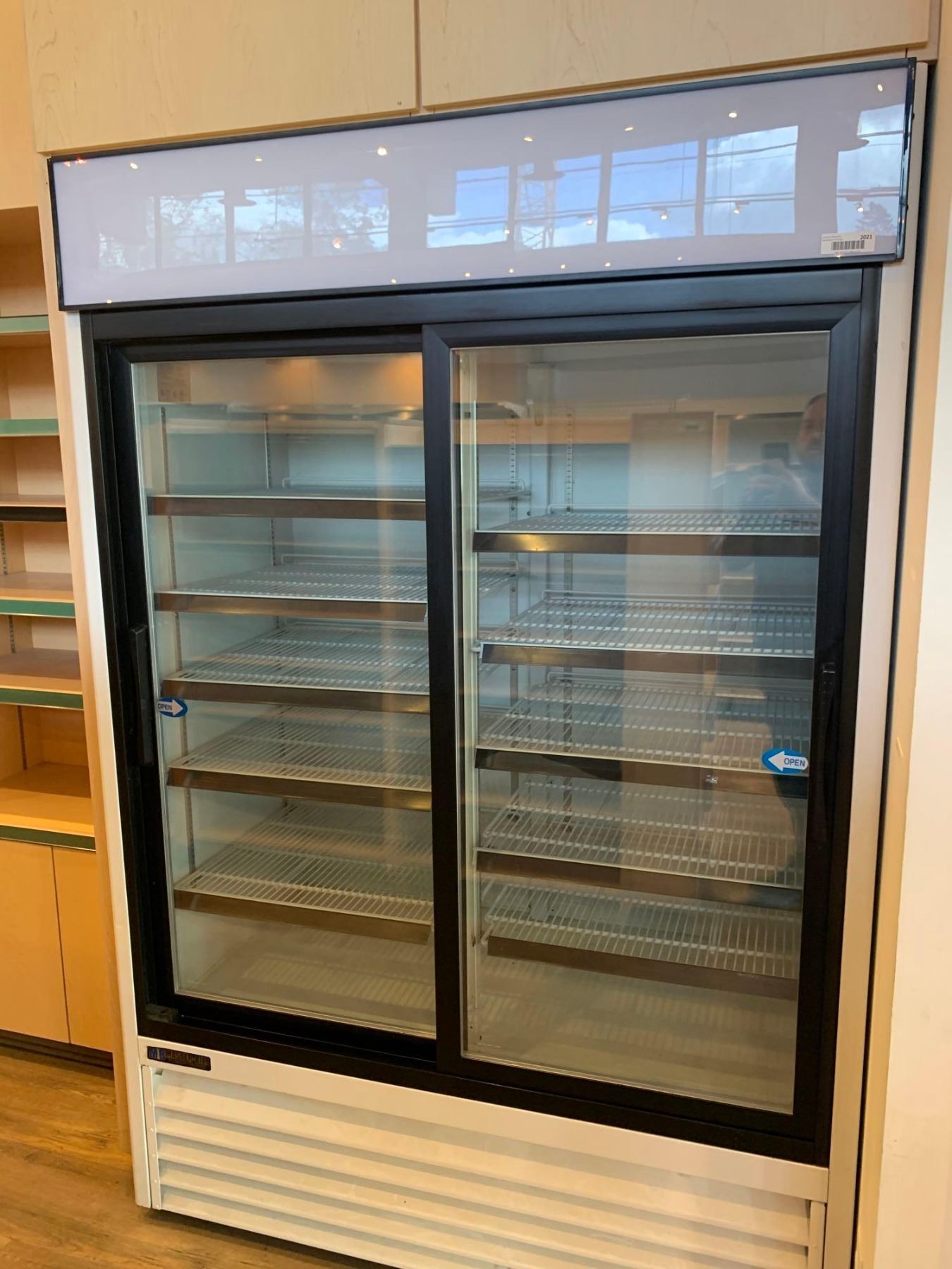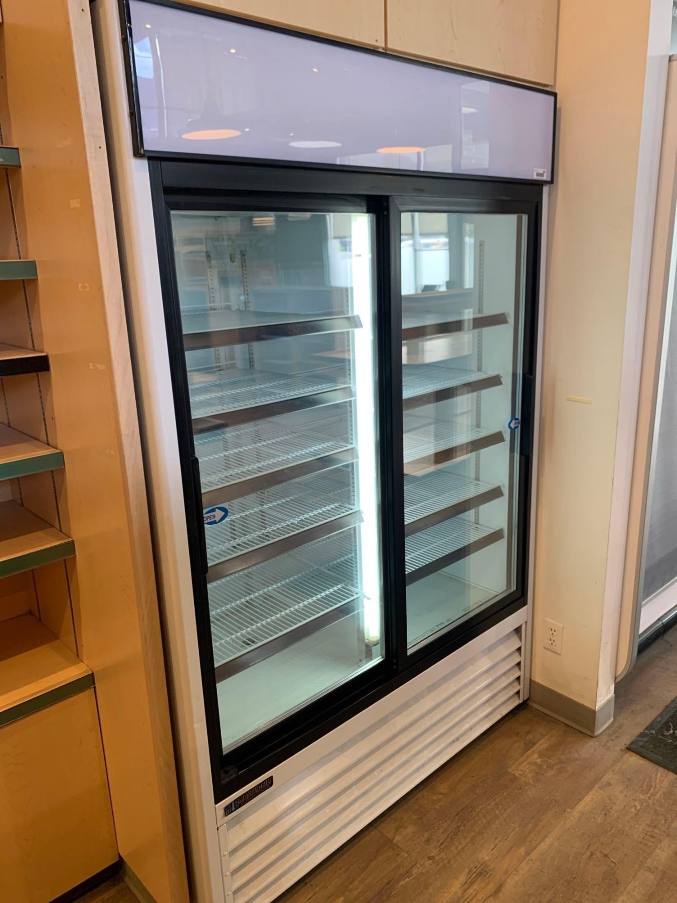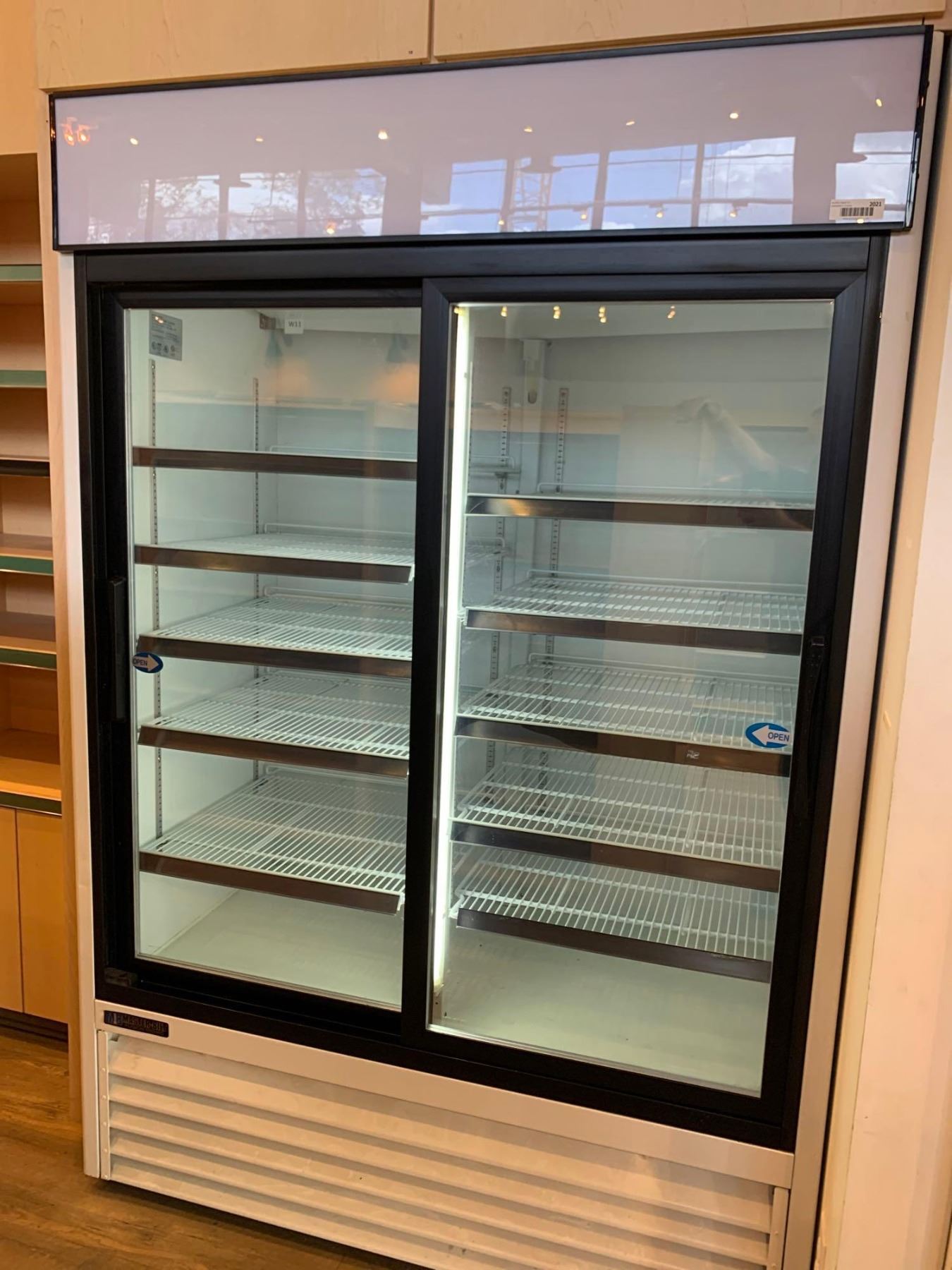 Masterbilt Model GR-48 Reach in double glass door cooler with shelving & lights - - recently serviced, tested & working unit - buyer must  remove