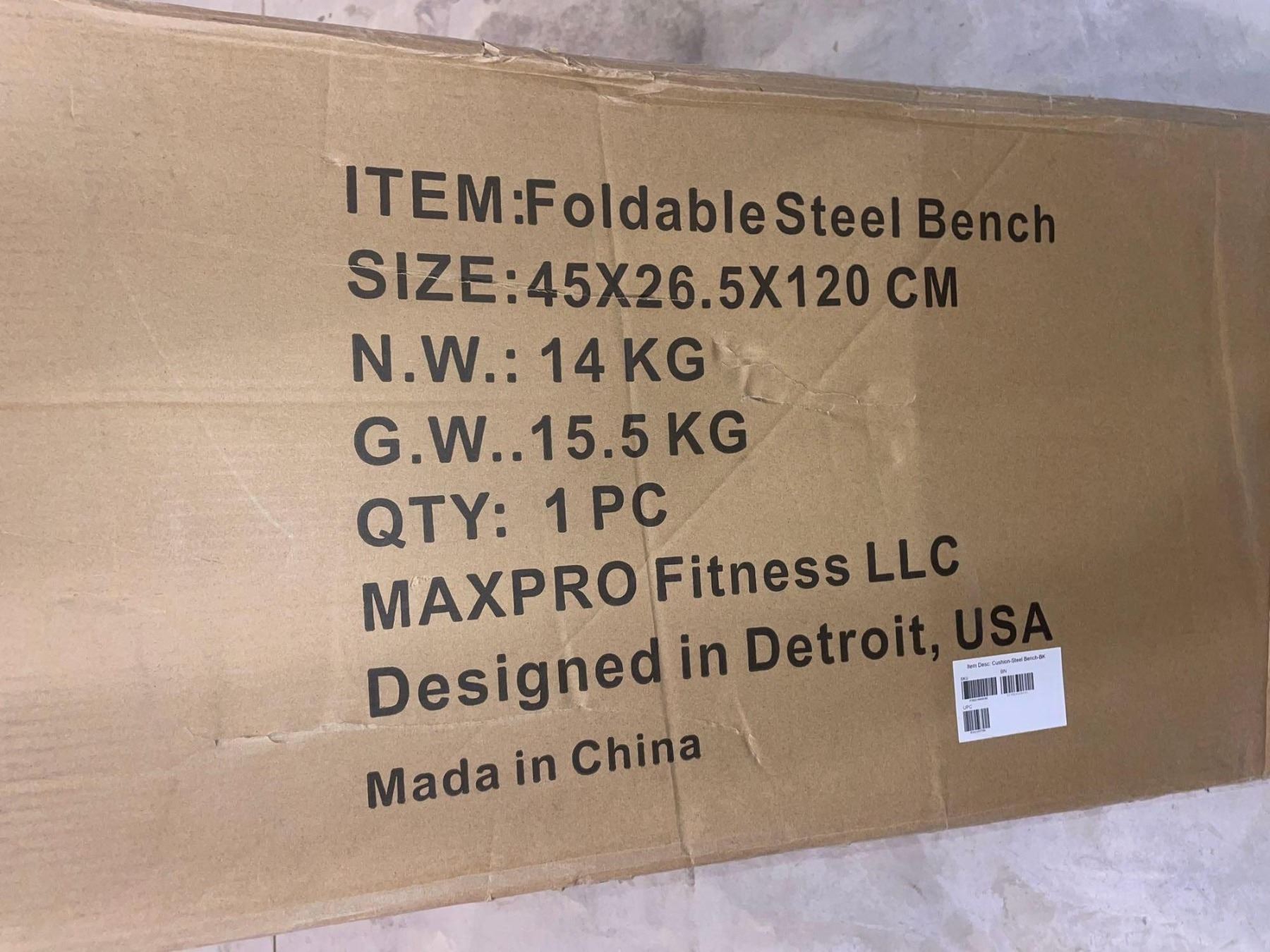 Max Pro Fitness Foldable Steel Bench 45x26.5 x 120cm (JUST THE BENCH)