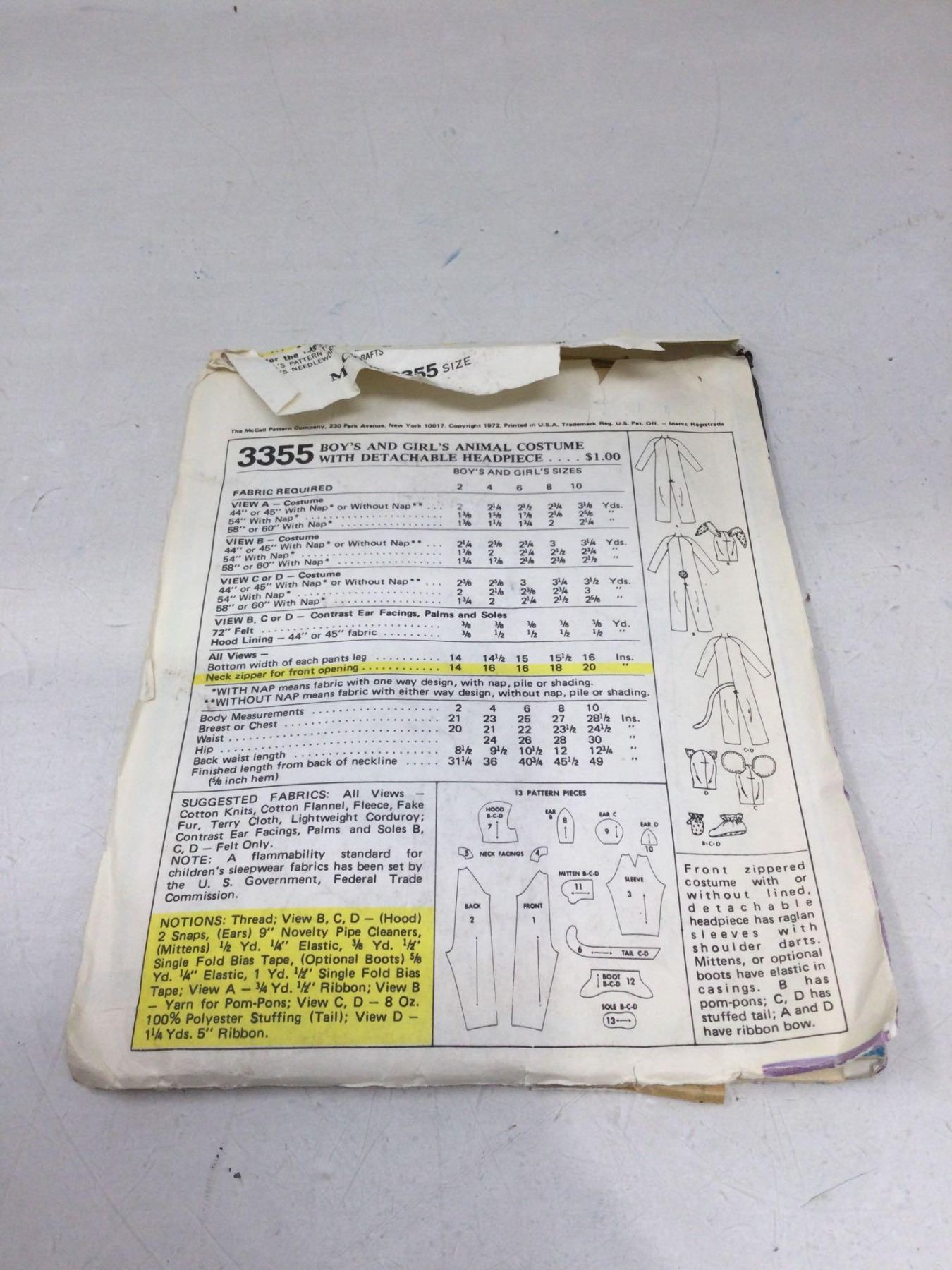 McCalls Vintage Step by Step Pattern- Animal costumes