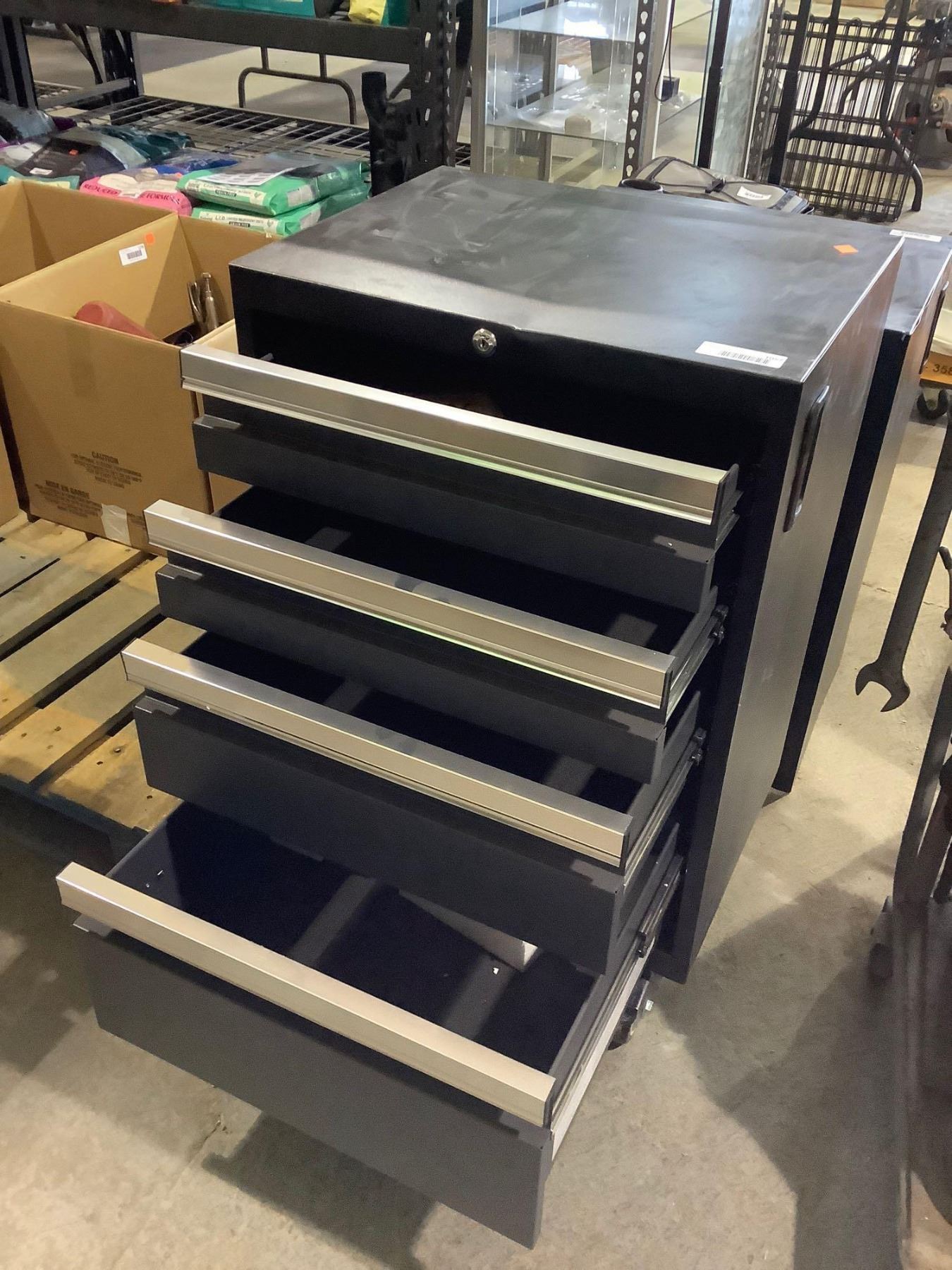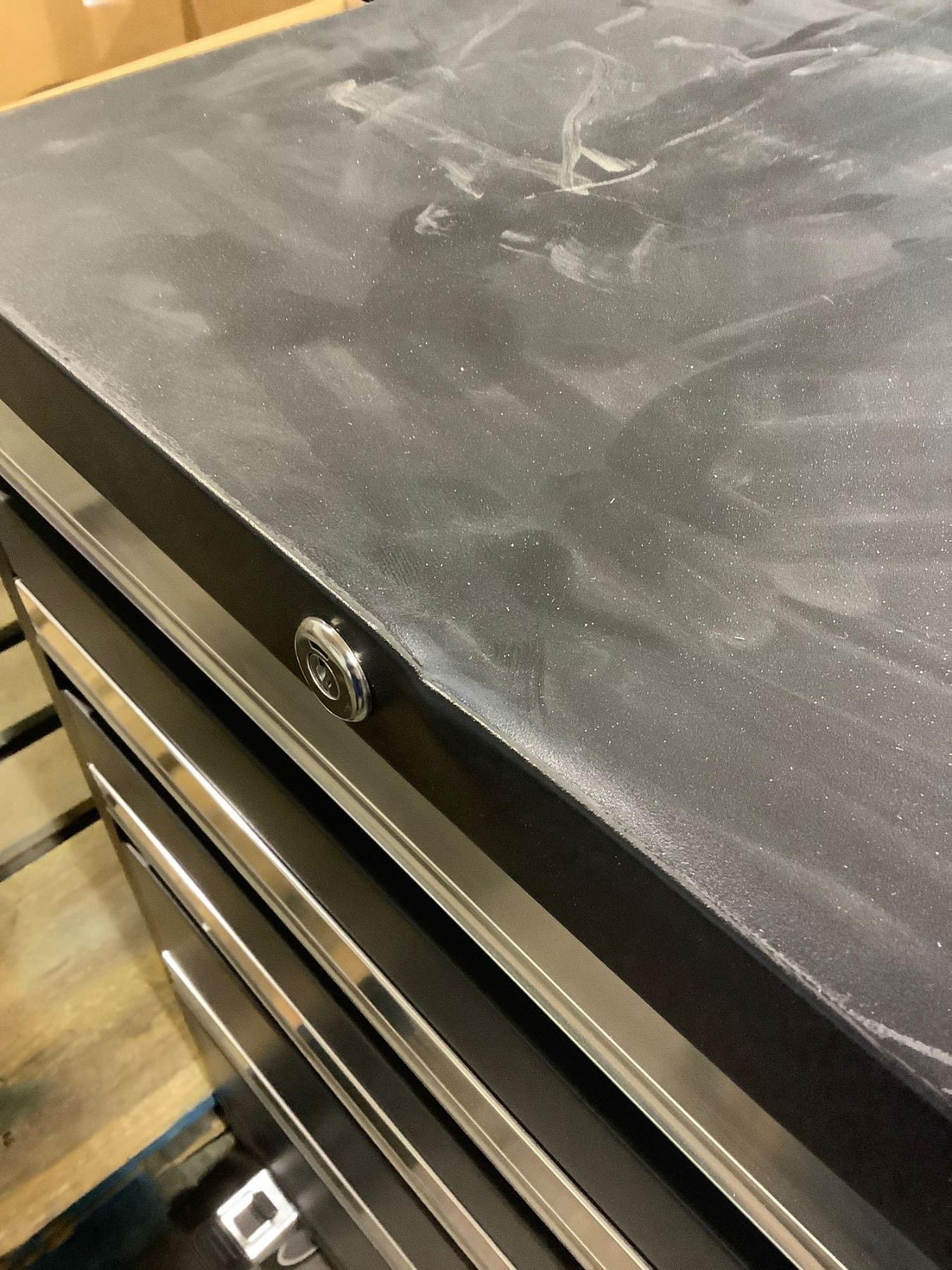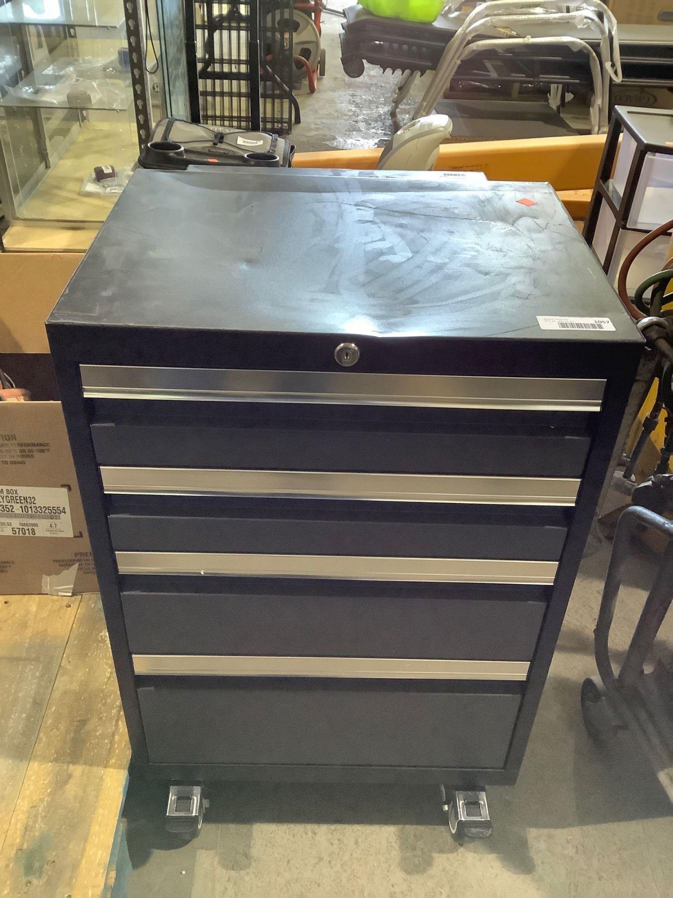 Metal Tool Box w/ Wheels In Grey - Visible Damage Top (21 3/4in x 16in x 28in)