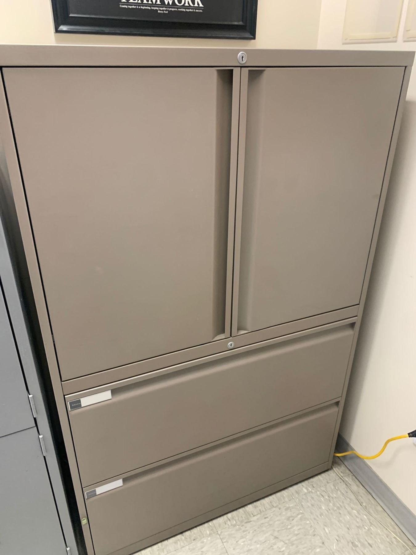 Metal double door with 2 lateral file cabinets storage