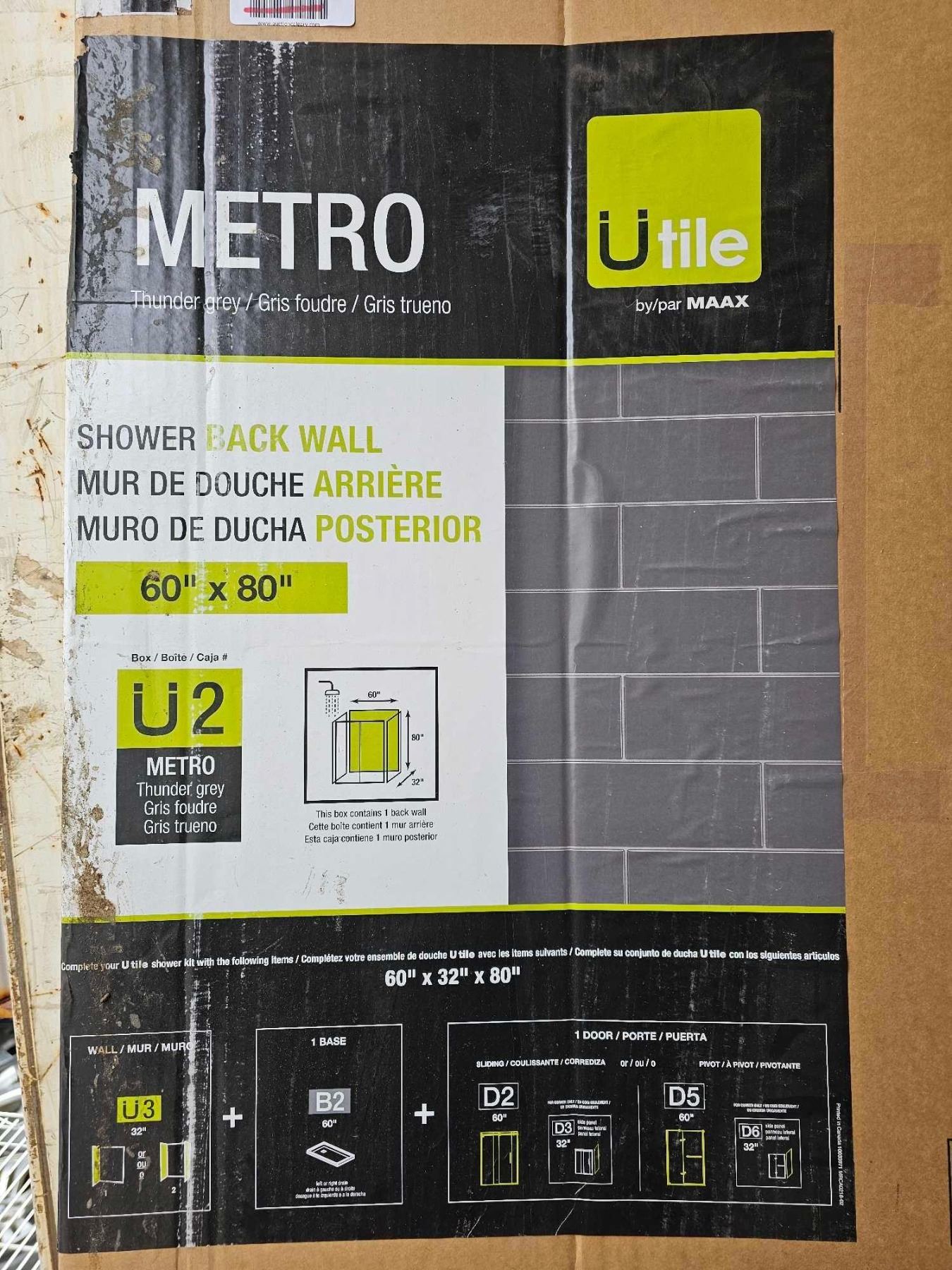 Metro Shower Back Wall - Thunder Grey 60x80"