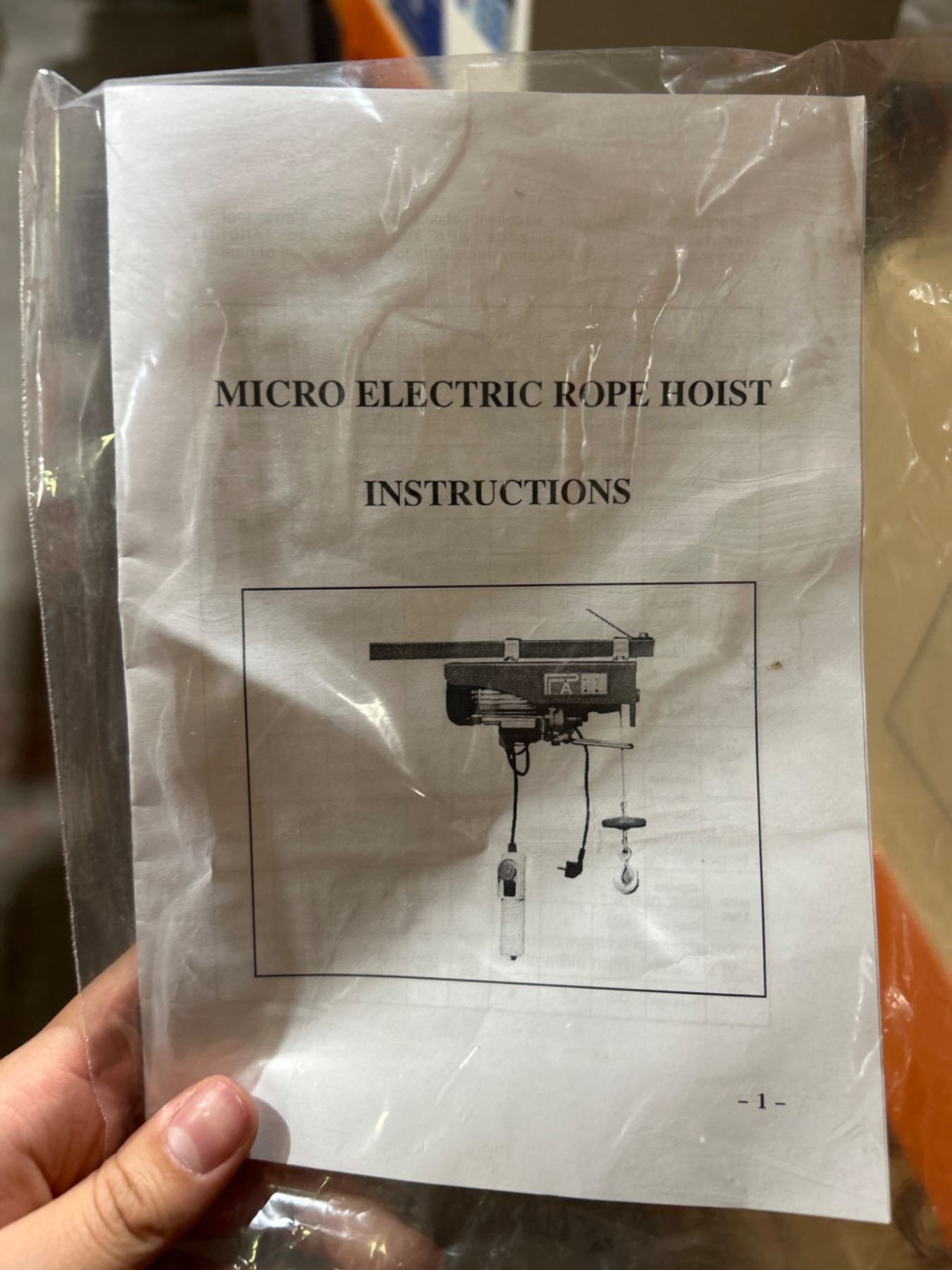 Micro Electric Rope Hoist with Power Cable and Accessories