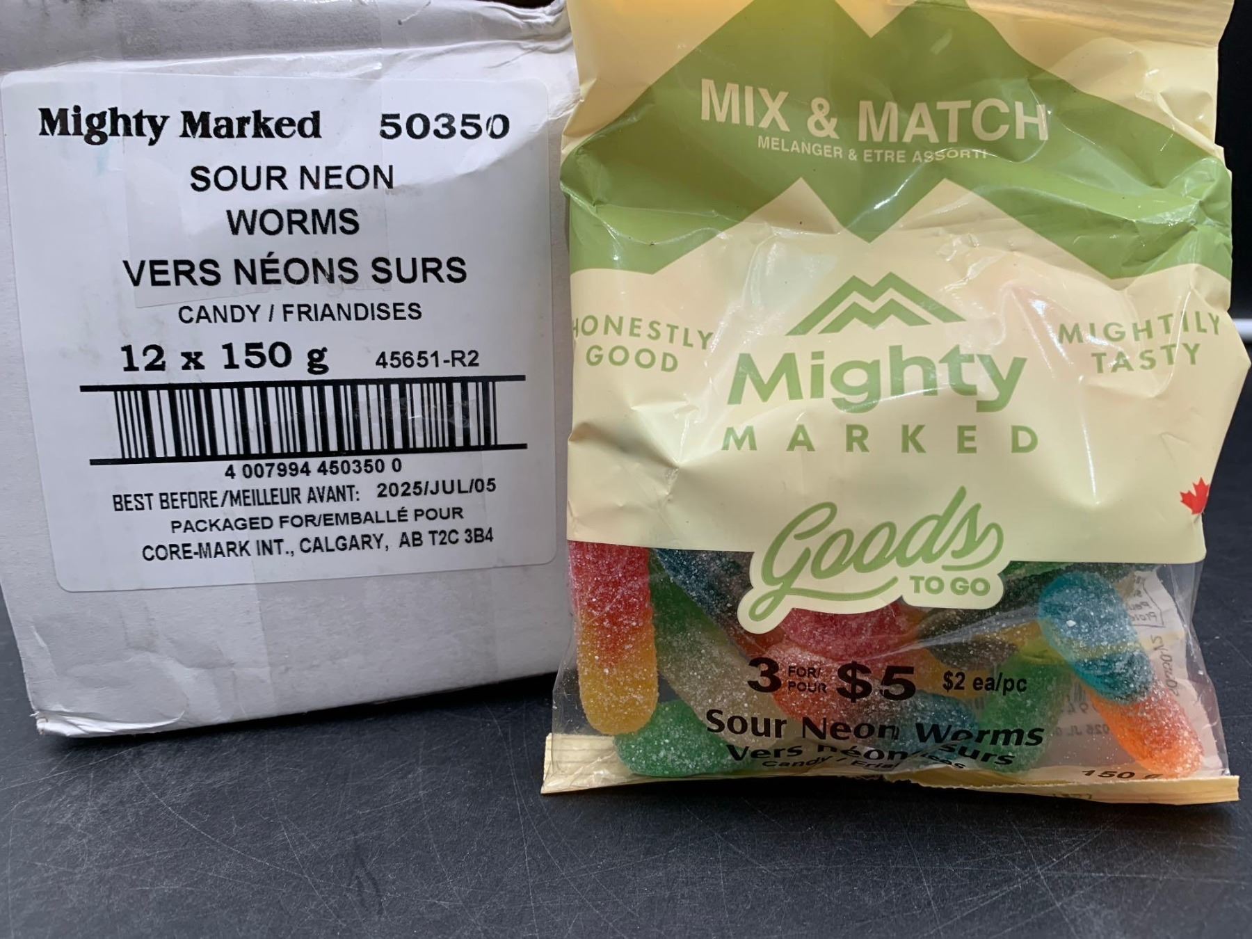 Mighty Marked Sour Neon Worms (12 x 150g)