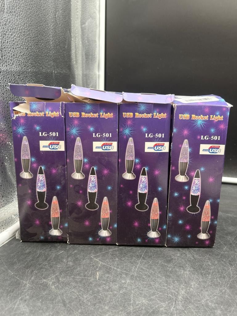 Mini Glitter Lava Lamp LED Vintage Night Light Lamp with USB Warm Rocket LightLot of 4