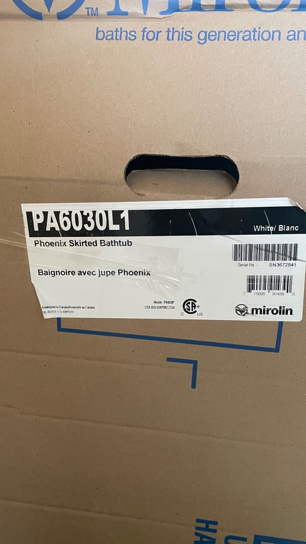 Mirolin Phoenix 60 x 30-in White Acrylic Skirted Bathtub