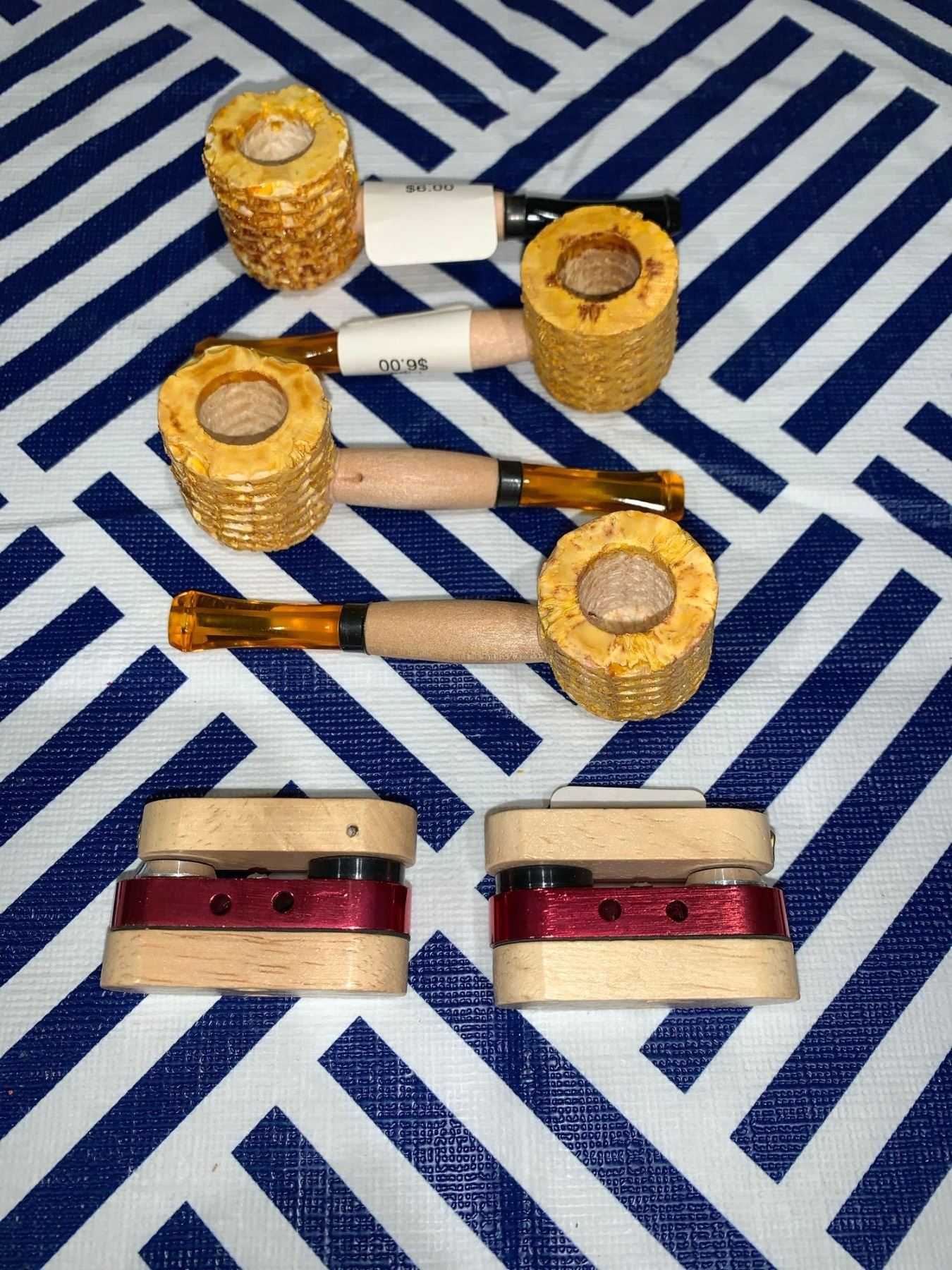 Mixed lot of 4 corn cob pipes and 2 monkey pipes